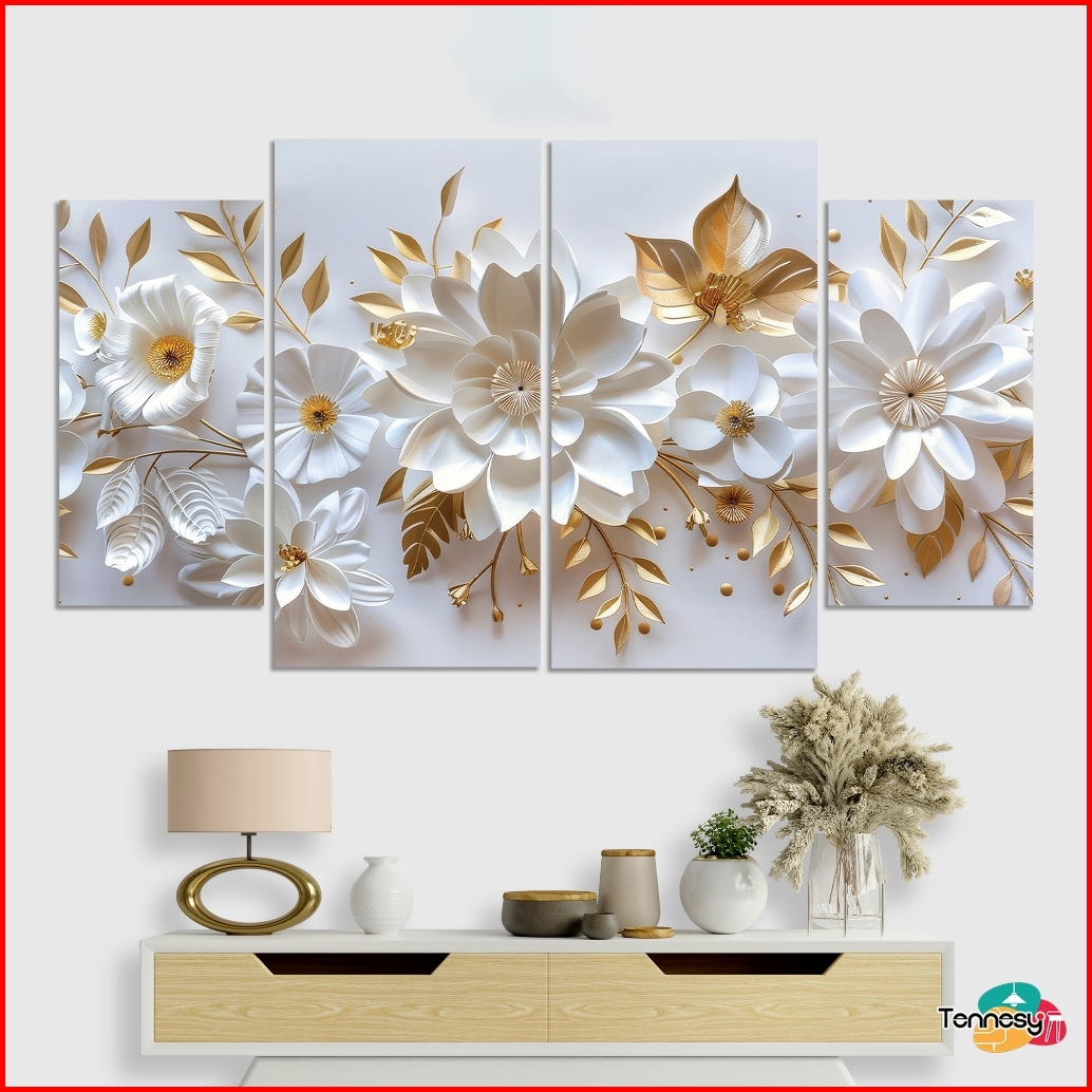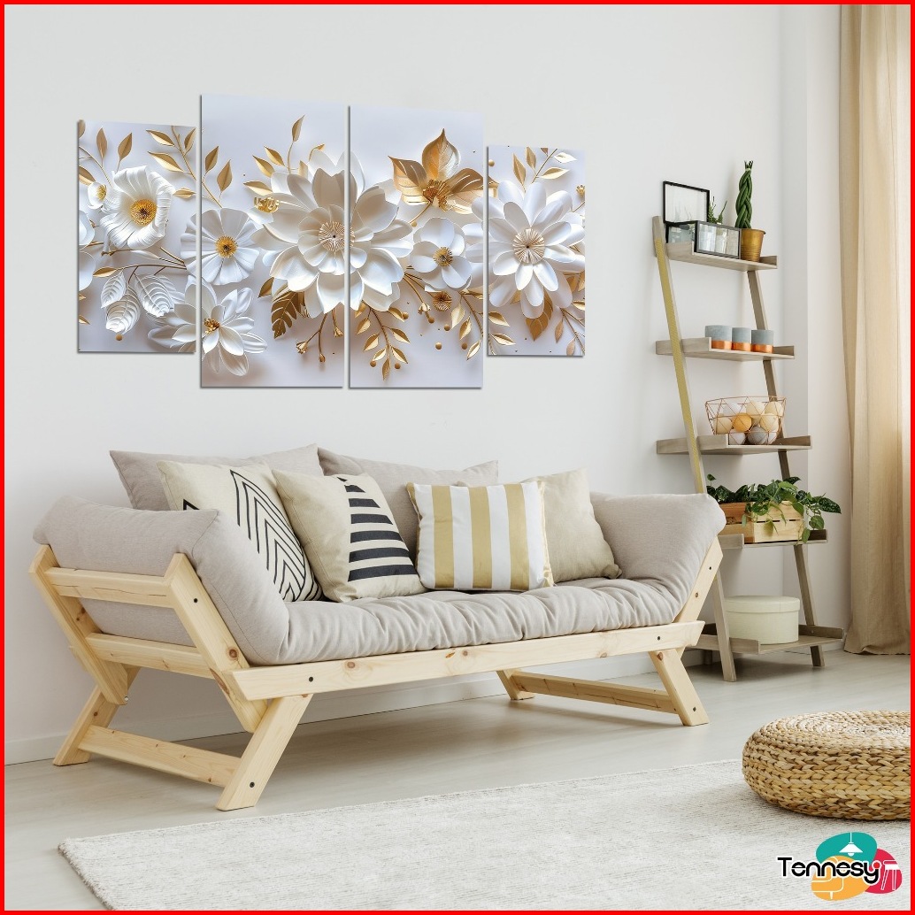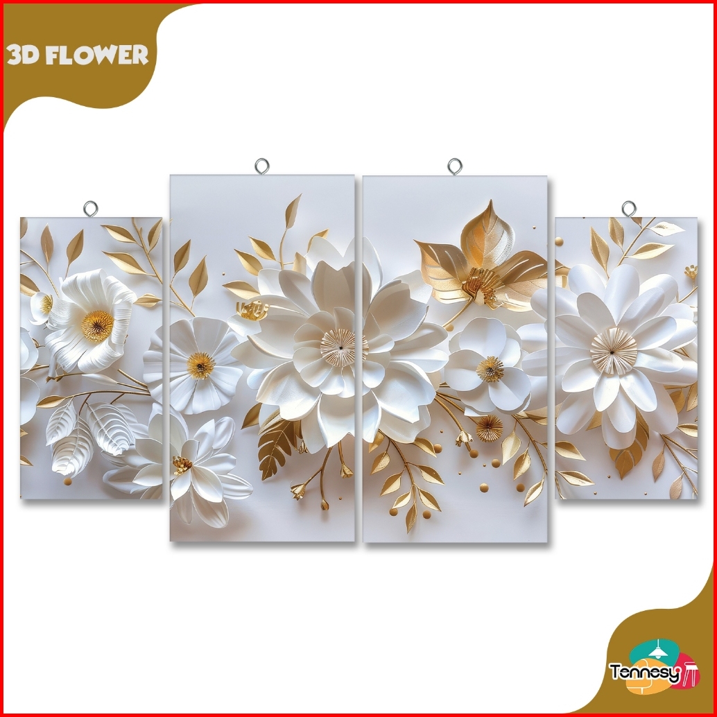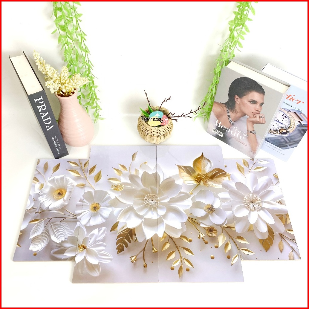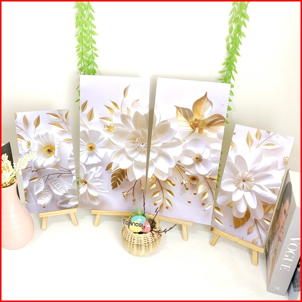 Tennesy Hiasan Dinding Aesthetic 1 Set Artistic Flowers 4 Panel 70x40cm Pajangan Dekorasi Rumah