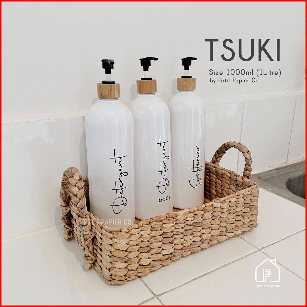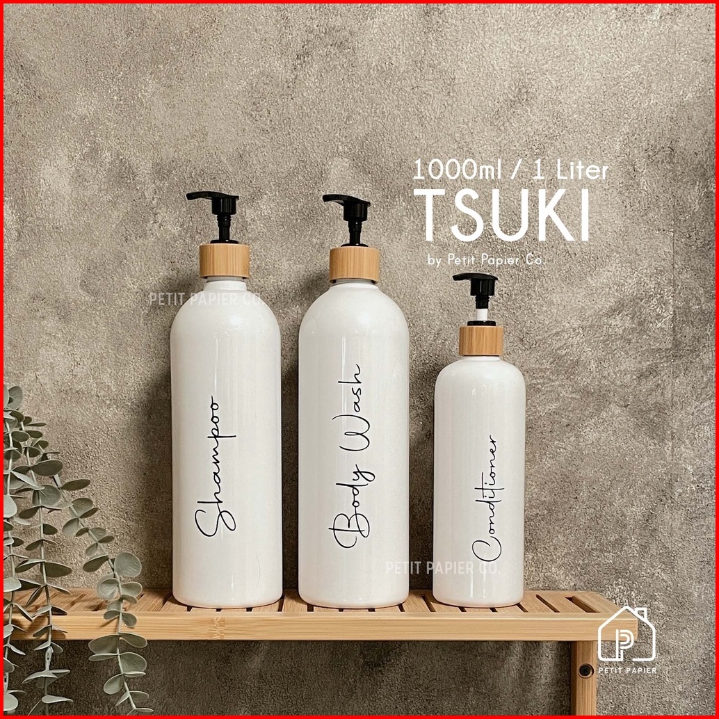 Papier Home Tsuki 1l 1000ml Botol Sabun Shampoo Aesthetic Minimalist Bathroom Bottles Dispenser Refill