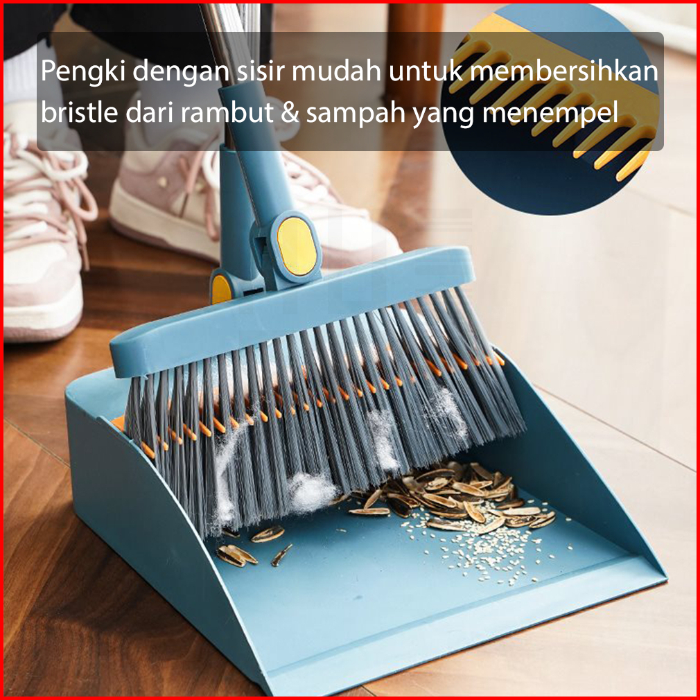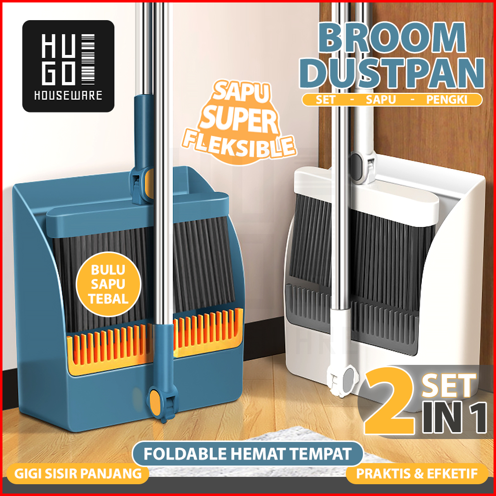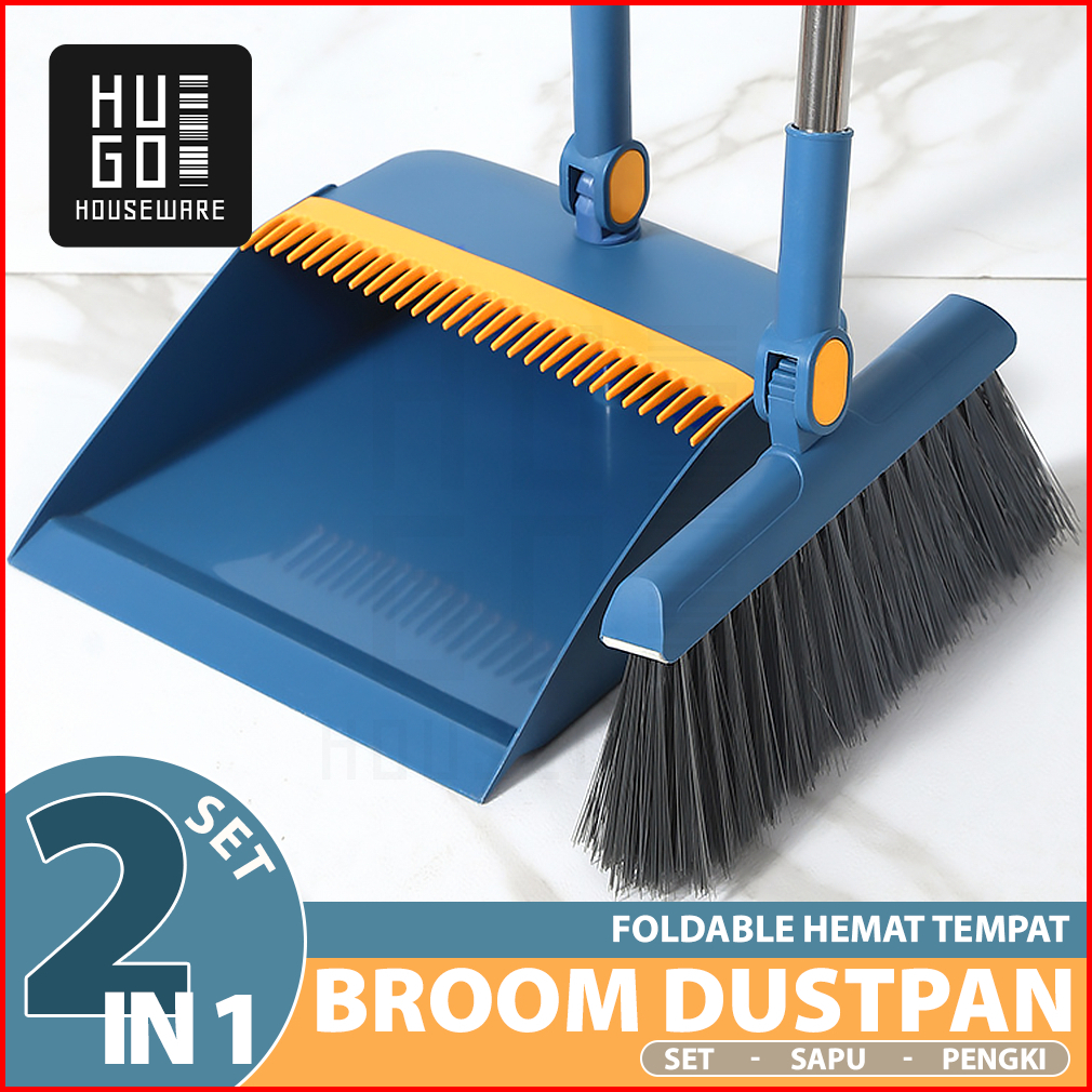 Set Sapu Pengki Alat Pembersih Lantai Broom Set Dustpan Sapu Lipat Praktis Sapu Lantai Pengki Set Multifungsi Hugo