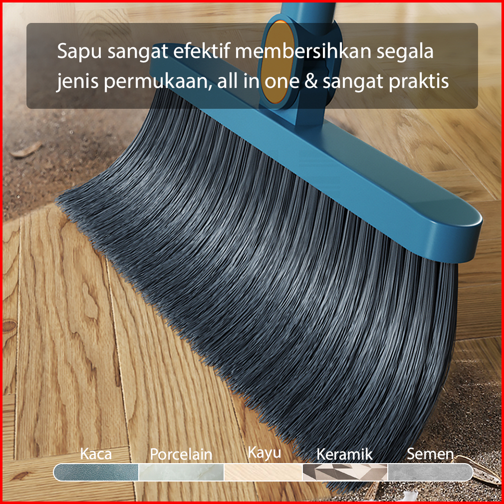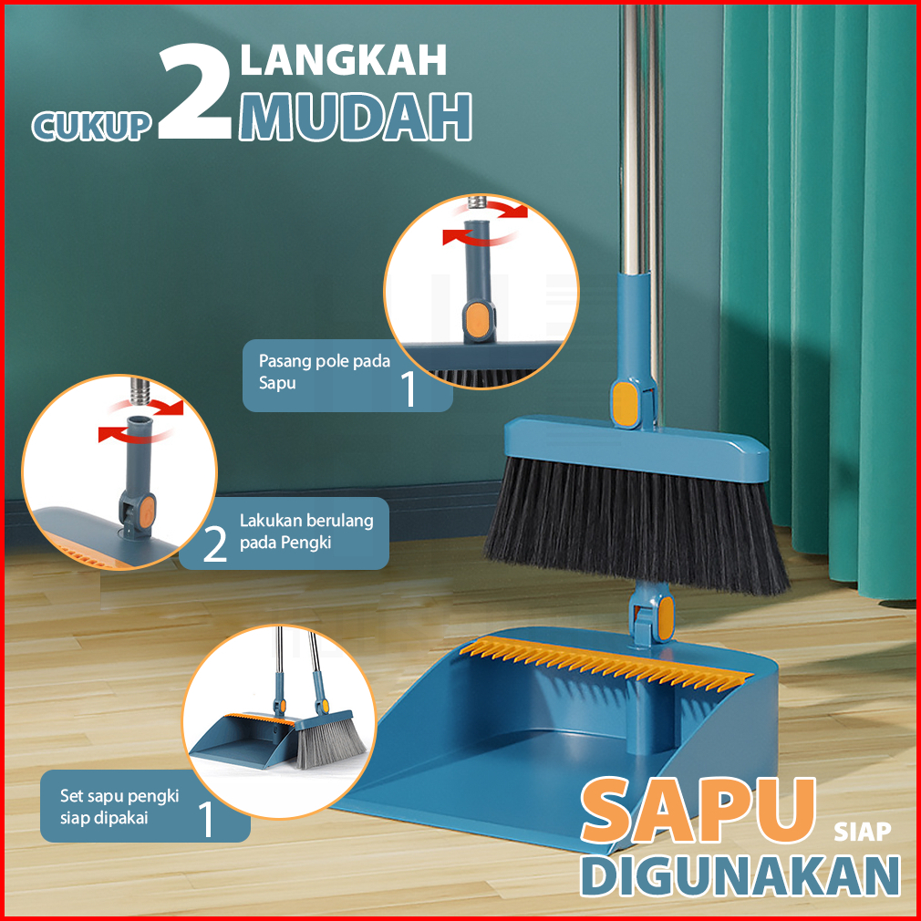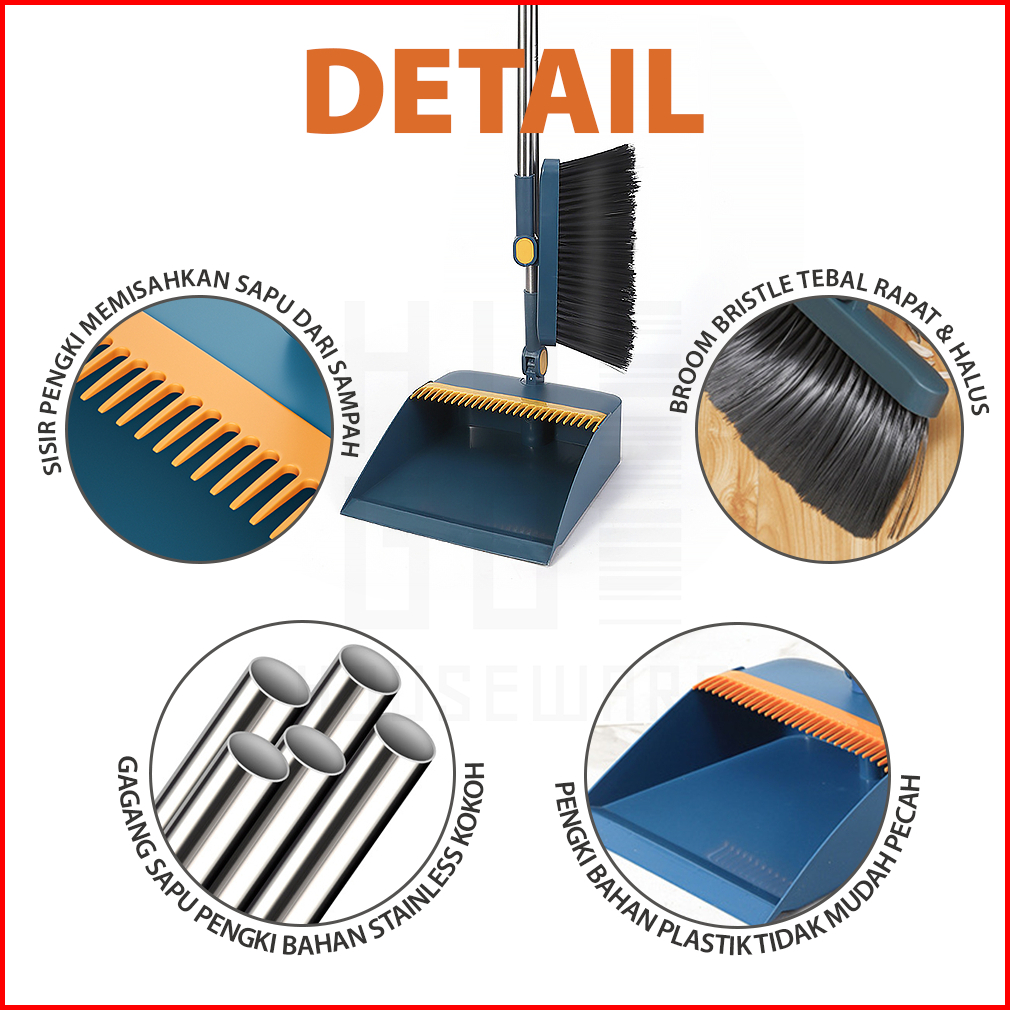 Set Sapu Pengki Alat Pembersih Lantai Broom Set Dustpan Sapu Lipat Praktis Sapu Lantai Pengki Set Multifungsi Hugo