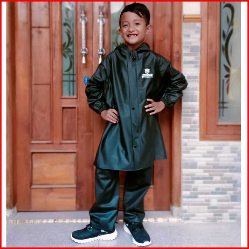Jas Hujan Mantel Anak Anti Rembes Setelan Celana Bahan Pvc Karet Tebal Kuat Elastis Waterproof