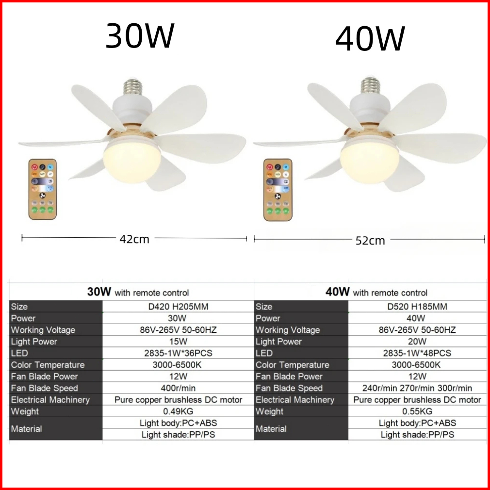 Kipas Angin Plafon Lampu 2in1 Lampu Kipas Langit-langit Multifungsi Lampu Kipas Remote Control Yang Dapat Diredupkan Den