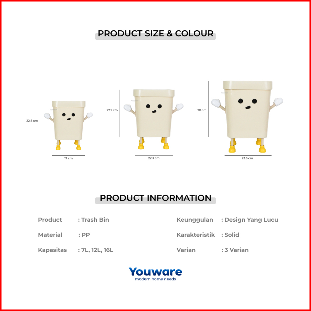 Youware - Walky Tempat Sampah Aesthetic Ukuran Besar Tempat Sampah Serbaguna Multifungsi