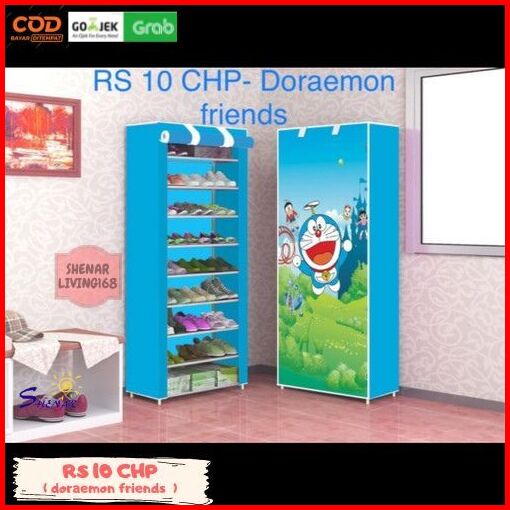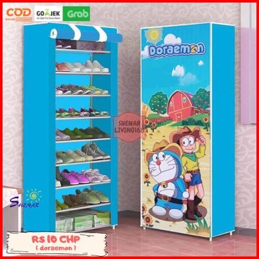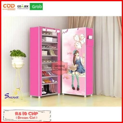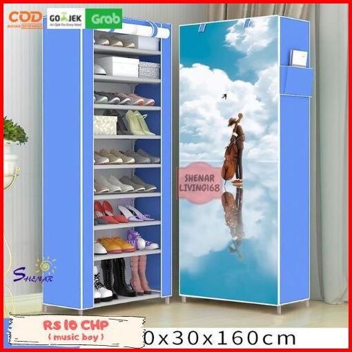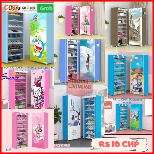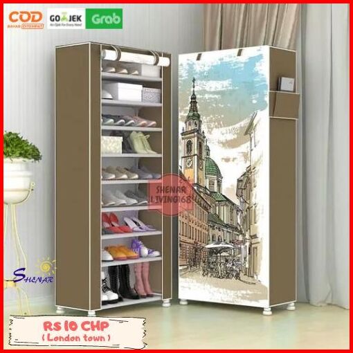 Rak Sepatu Portable Bongkar Pasang Karakter Non Woven Susun 10 Tingkat Rs-10 Chp Shenar