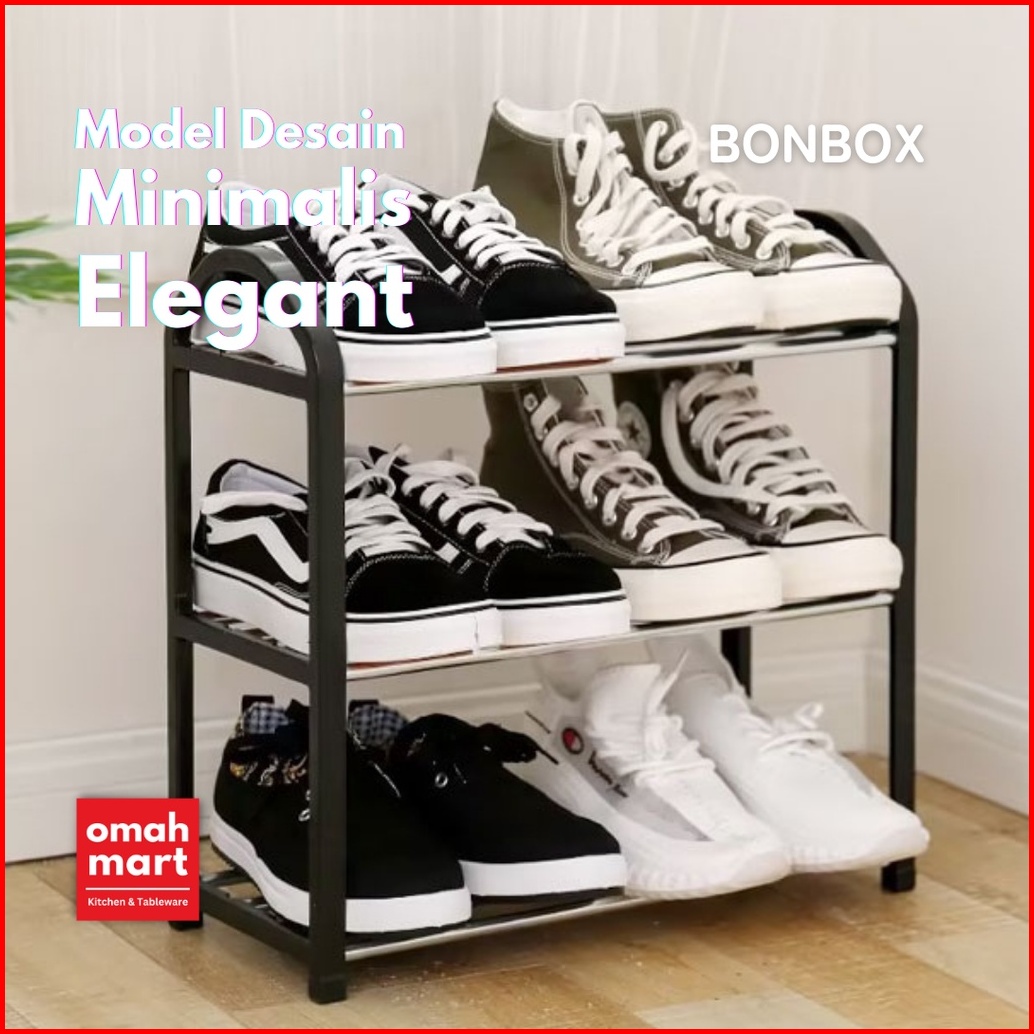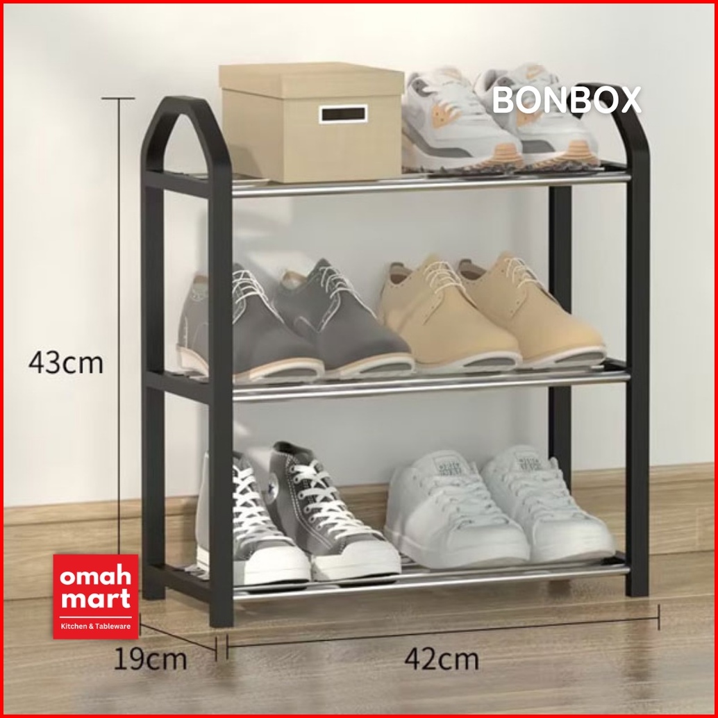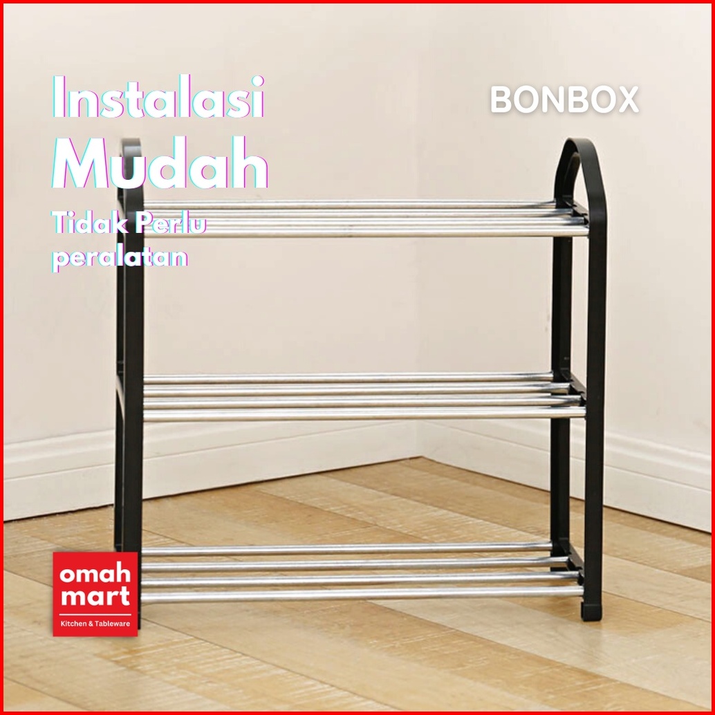 Bonbox Rak Sepatu Sandal Kecil Mini Minimalis Shoe Rack 3 Susun Besi Plastik