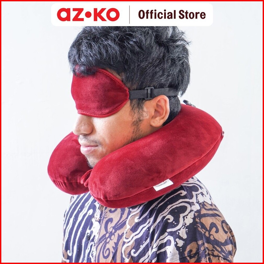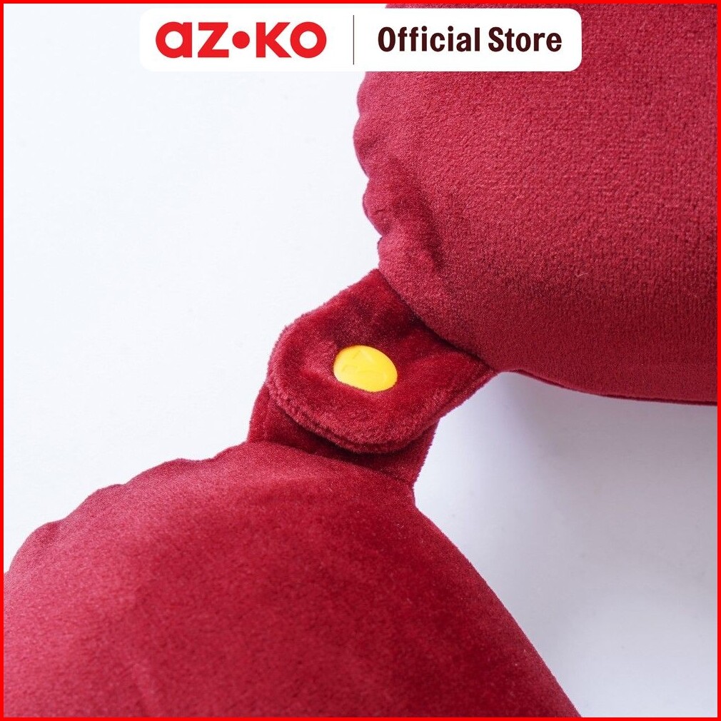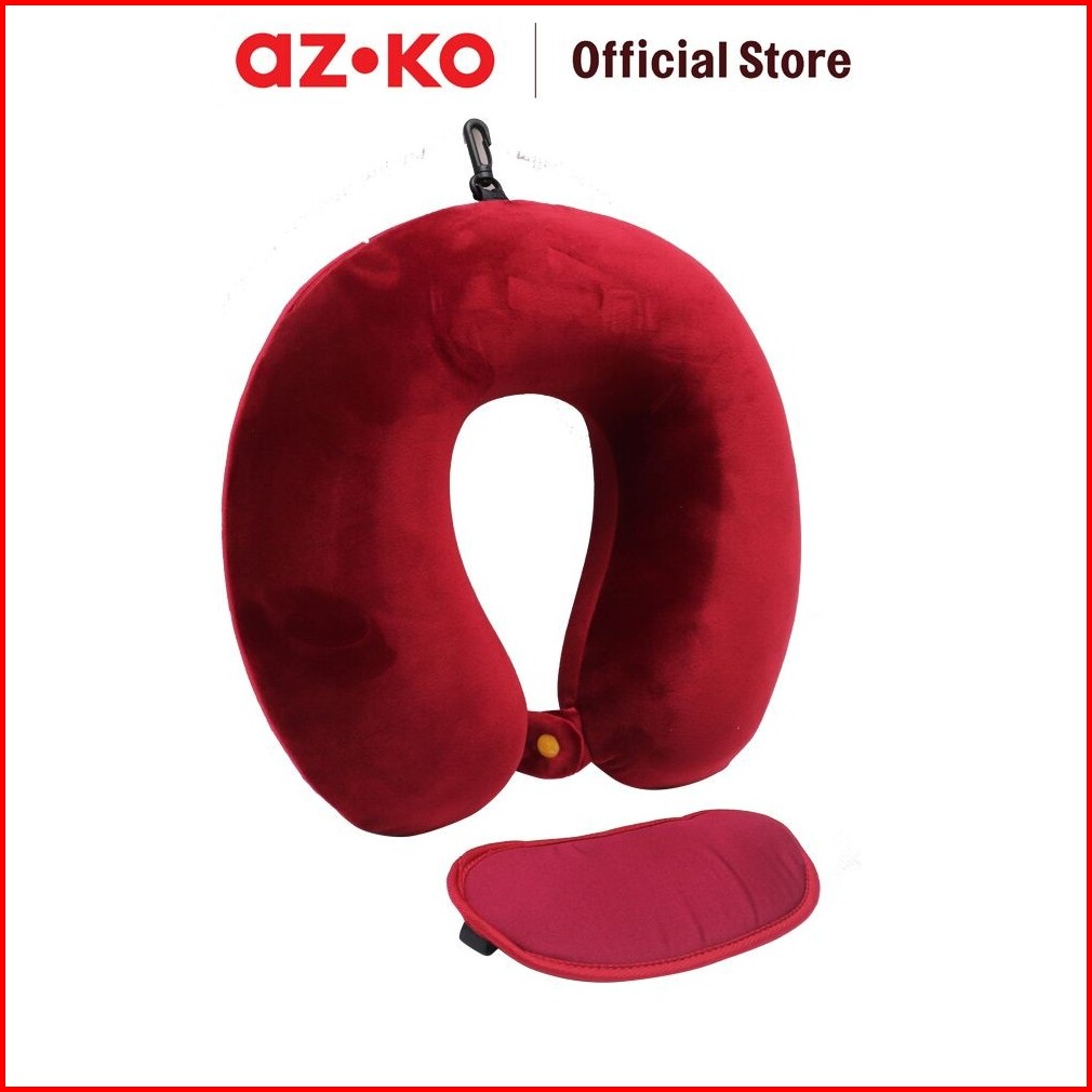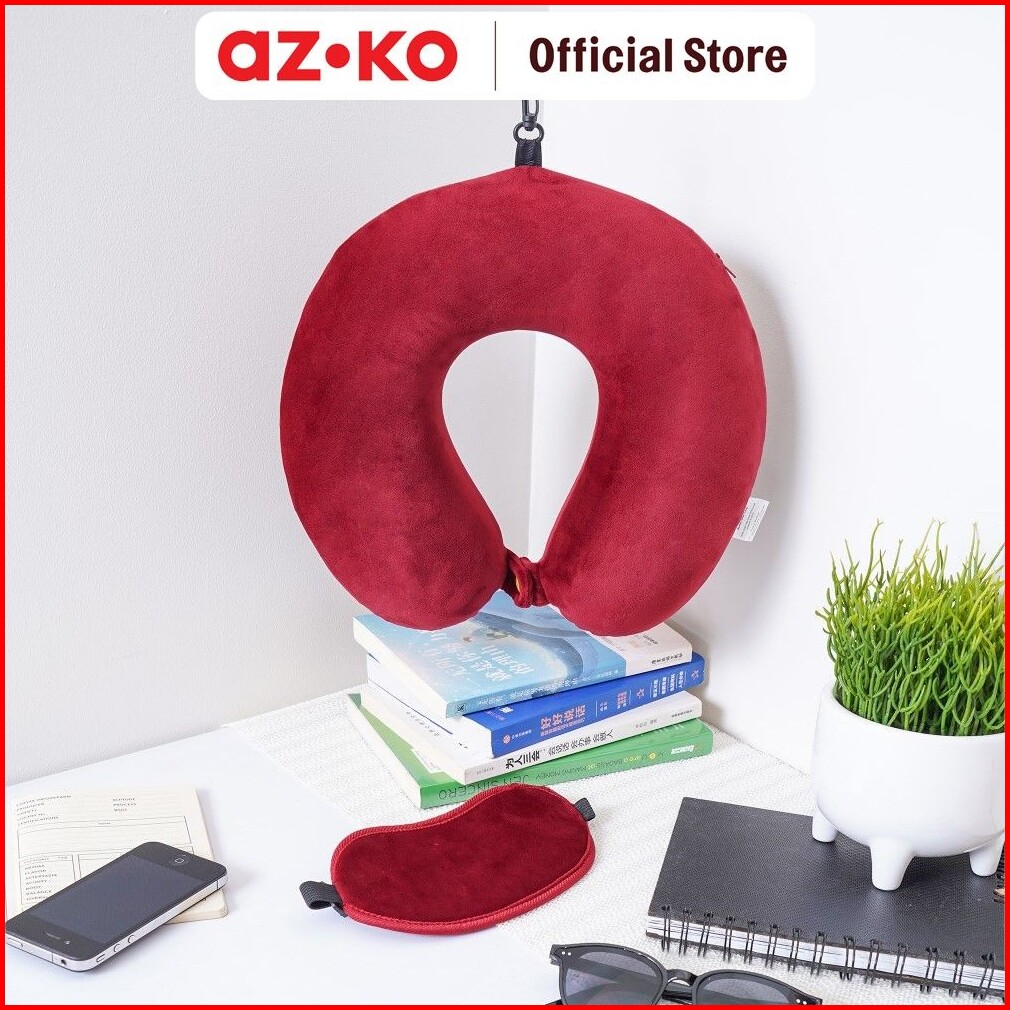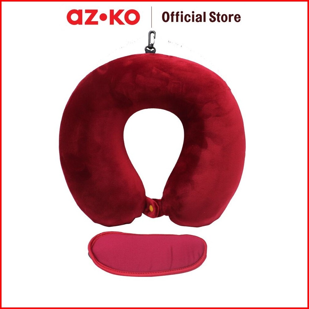 Azko Passport Bantal Leher Memory Foam Penutup Mata - Merah Neck Cushion Travel Bantal Mobil U-neck Car Pillow Sandaran