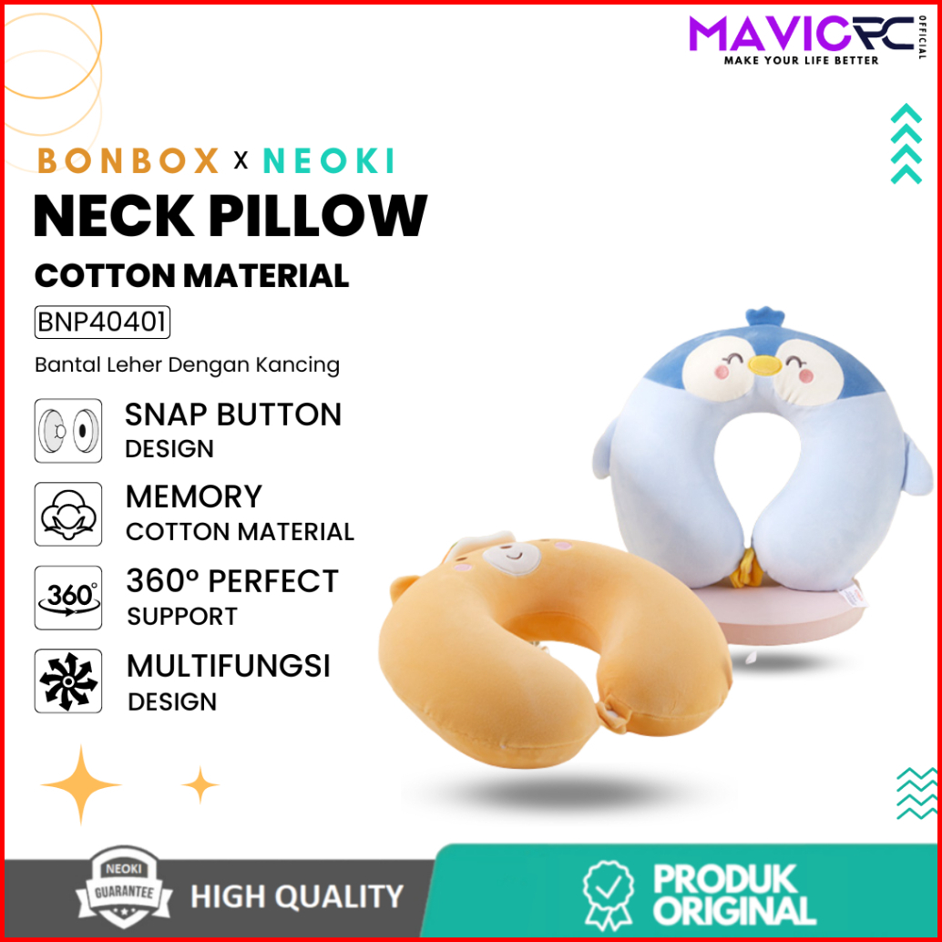 Neoki X Bonbox Bnp40401 U-shaped Neck Pillow Bantal Leher Travel Anti Pegal Lembut Dewasa Multifungsi 360 Dengan Kancing
