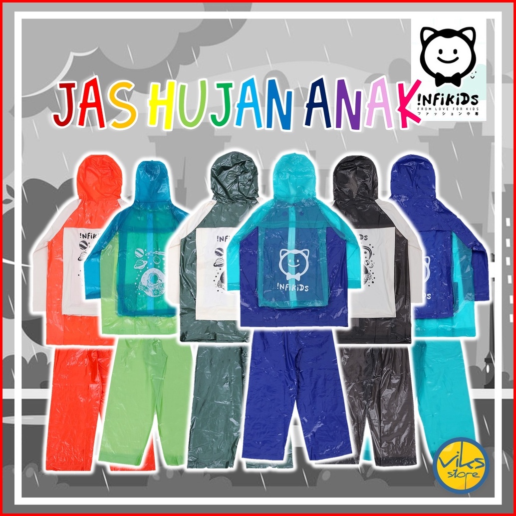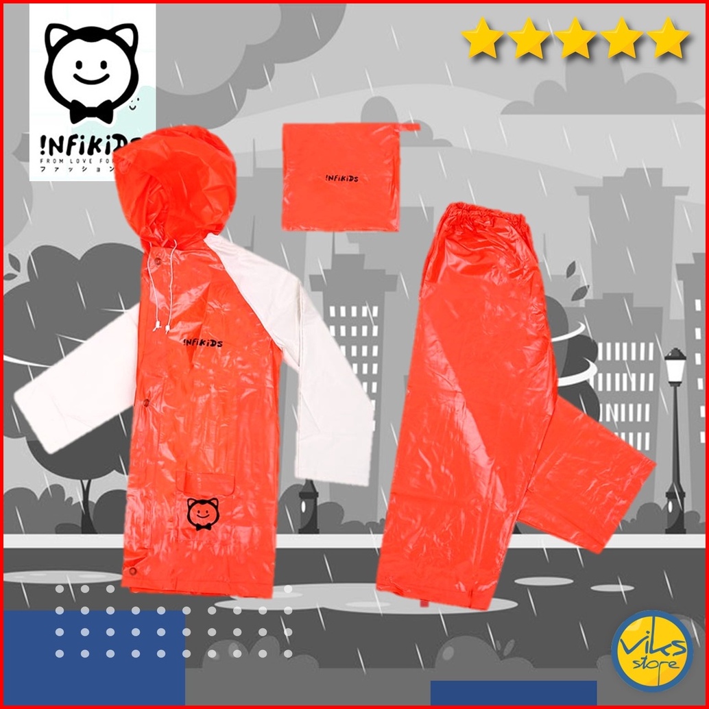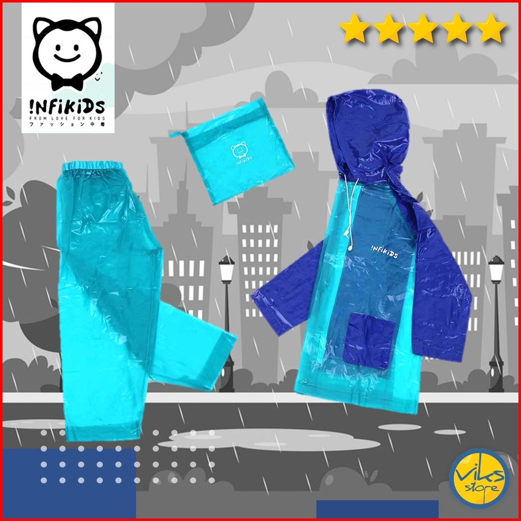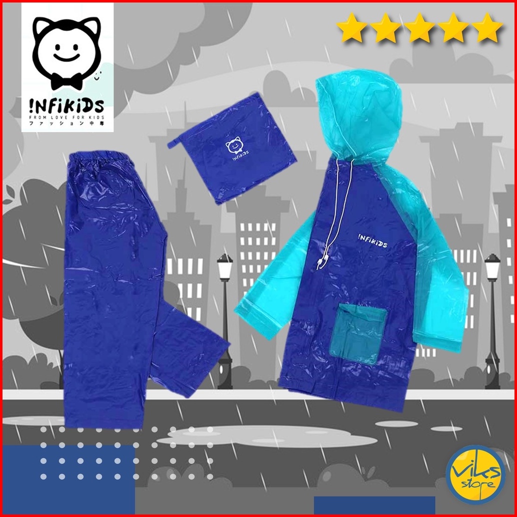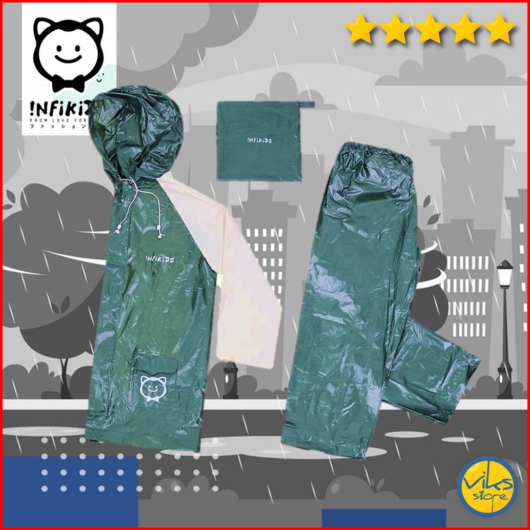 Jas Hujan Anak Kecil 6 - 10 Tahun Infikids Stelan Anti Air Kuat Anti Tembus Bahan Pvc Karet Untuk Sekolah Sd Smp Sepedah