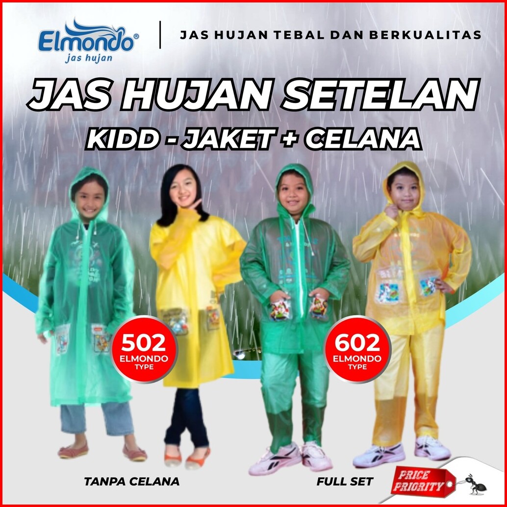 Jas Hujan Anak Setelan Set Jaket Celana Tebal Bagus Elmondo Kidd 602 502 Murah