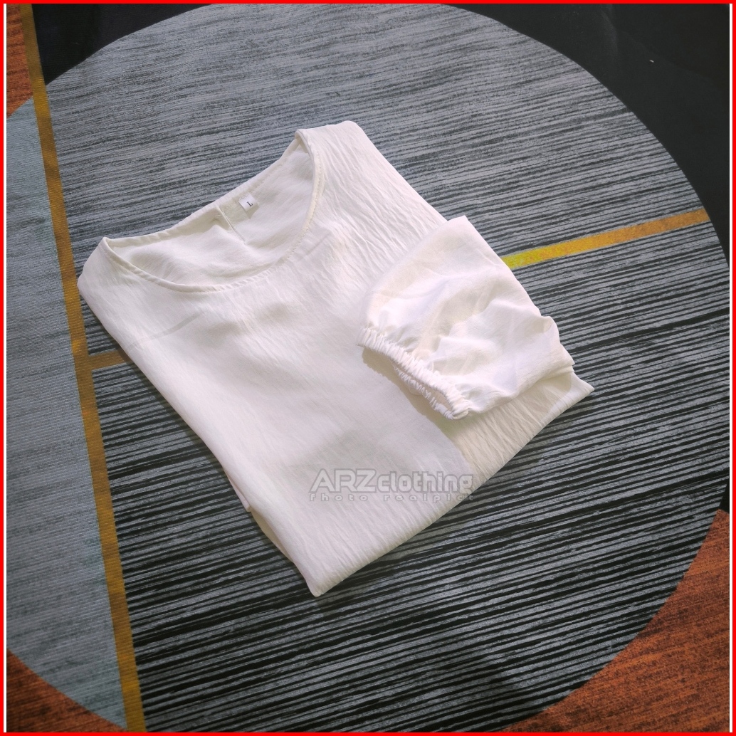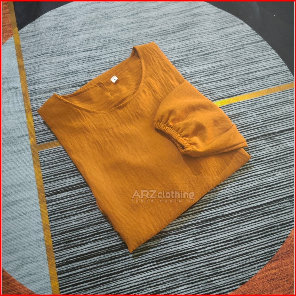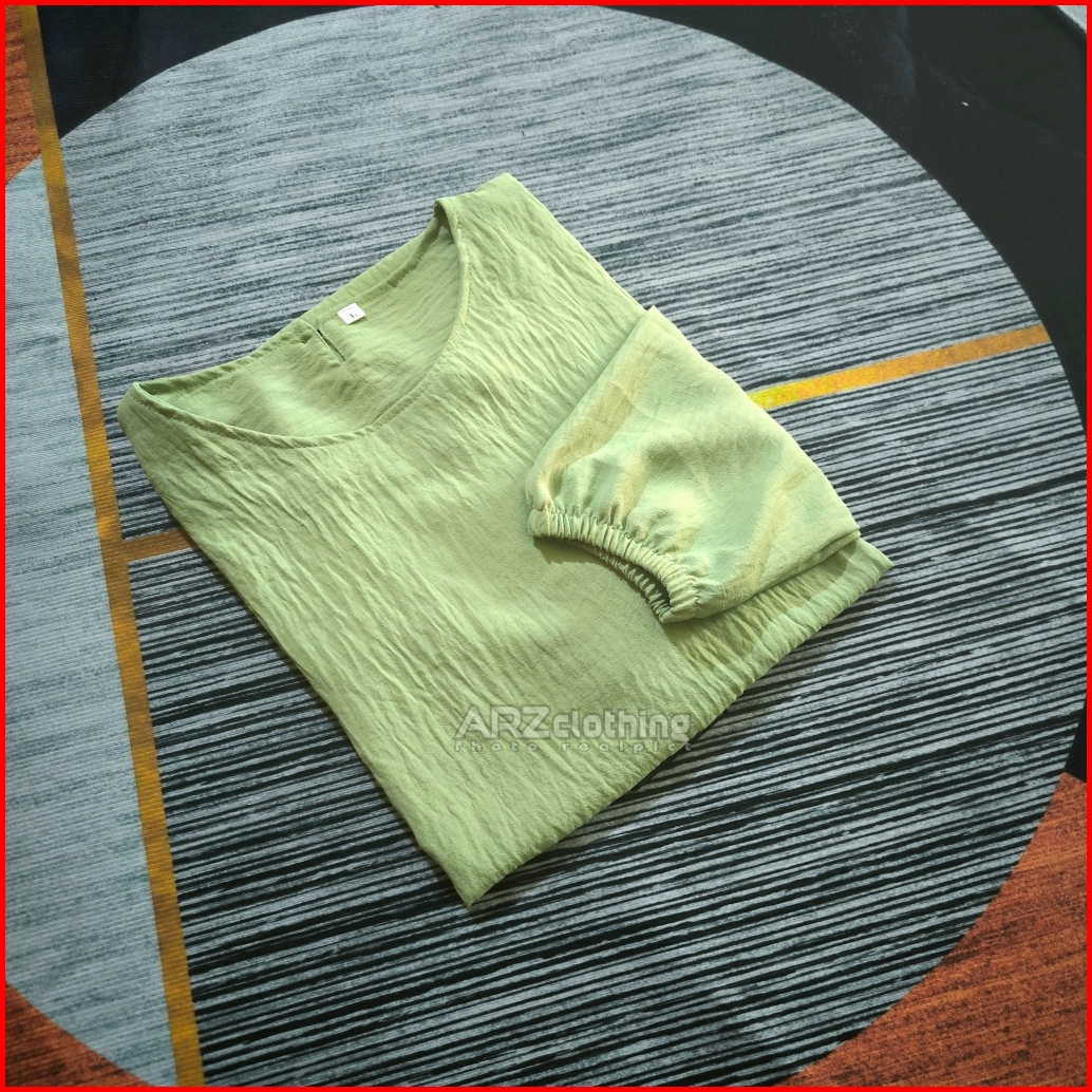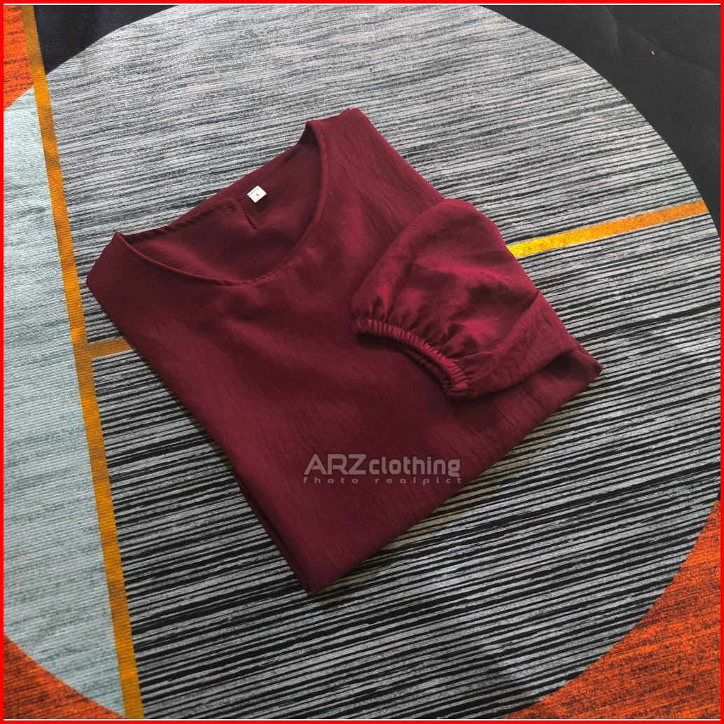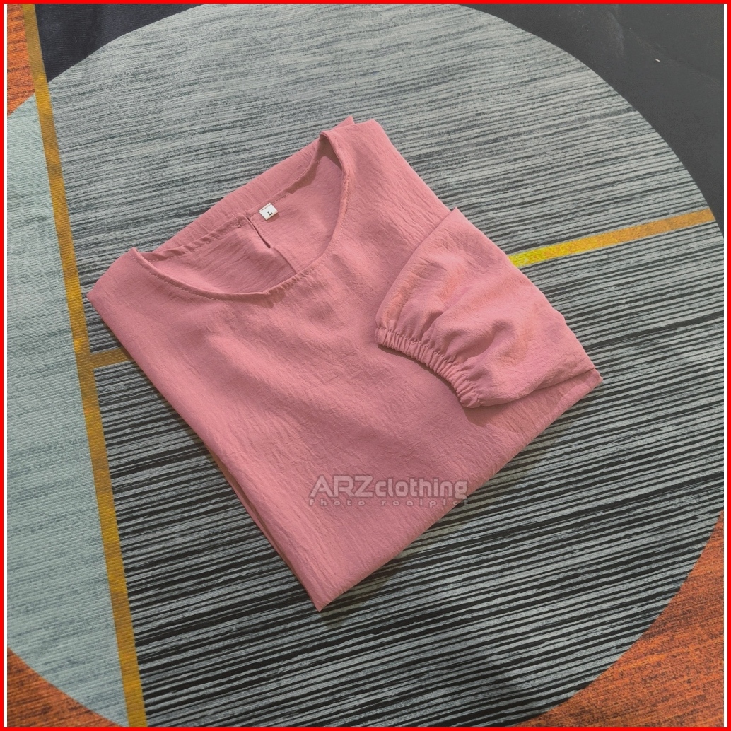 Atasan Simple Mode Tangan 3 4 Size M L Xl Xxl 3xl Jumbo Maksimal Ld 130 Blouse Kasual - Tunik Crinkle Wanita Terbaru Kek