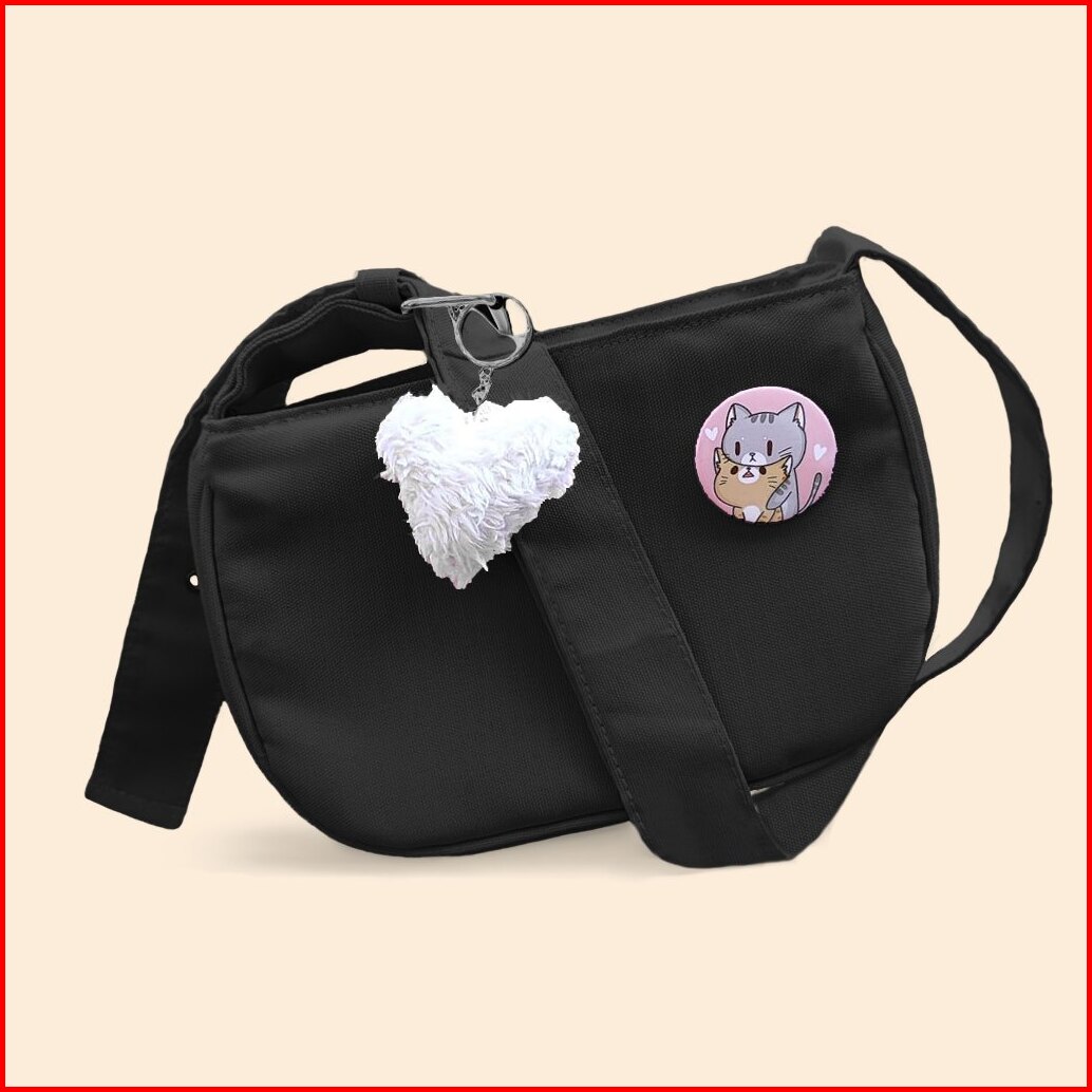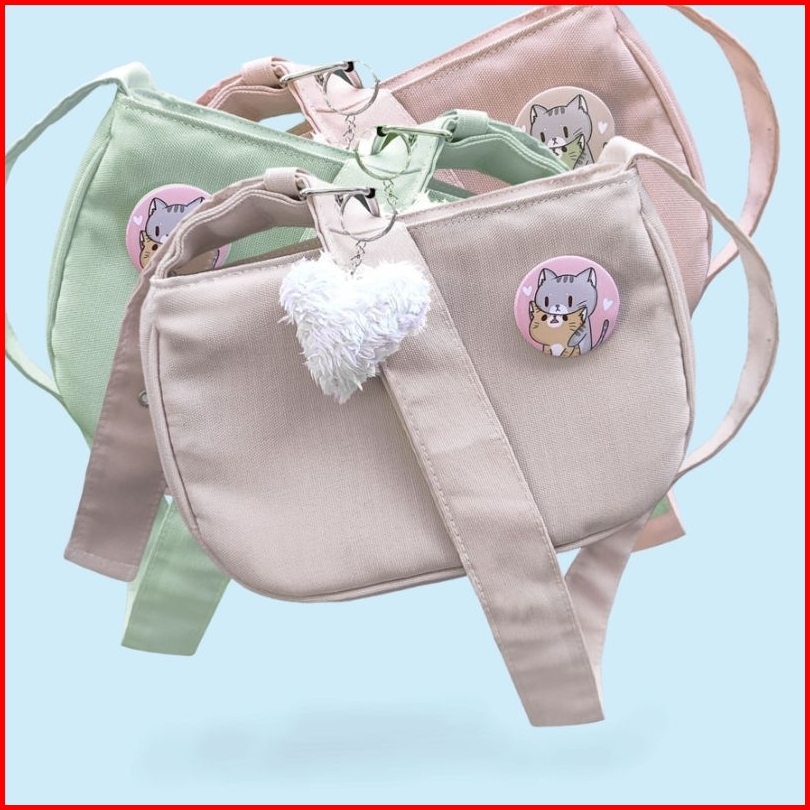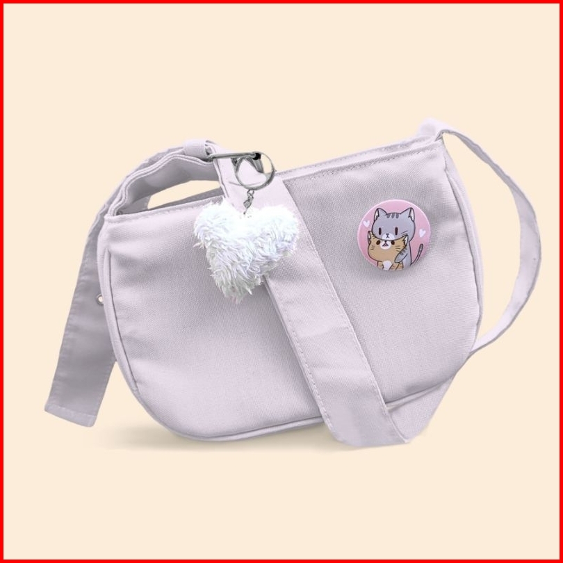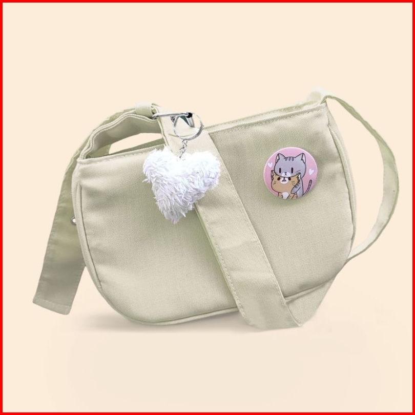 Tas Selempang Canvas Tas Wanita Free Pin 2pcs