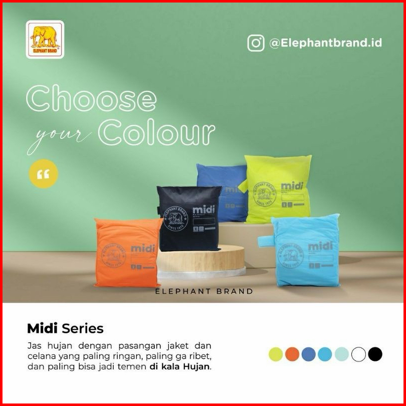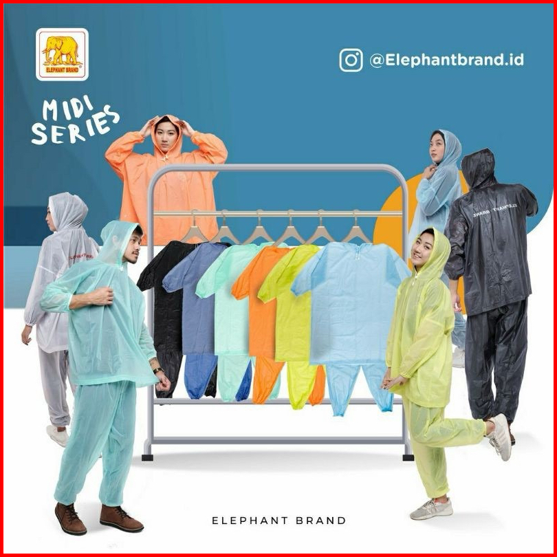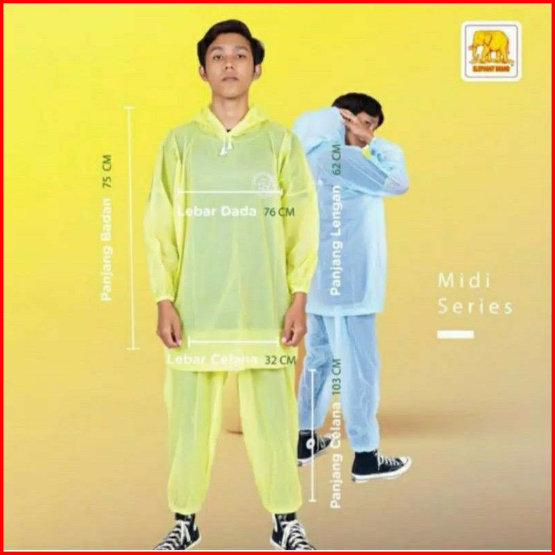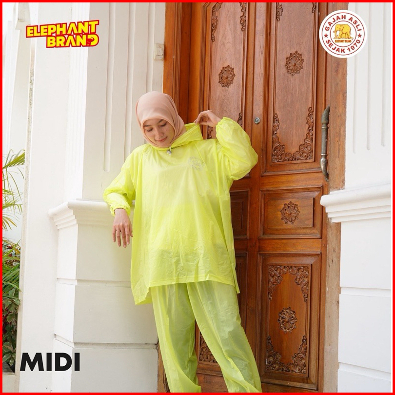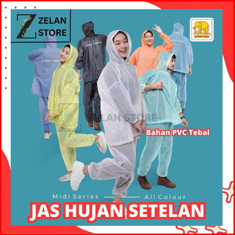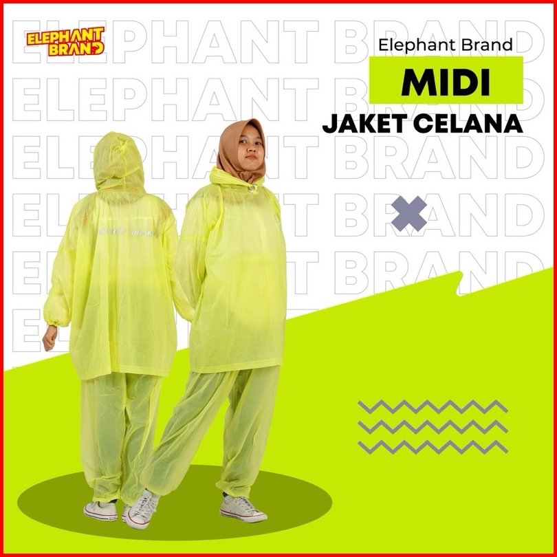 Midi - Setelan Jas Hujan Pria Wanita Dewasa Mantel Midi Jaket Celana Elephant Brand