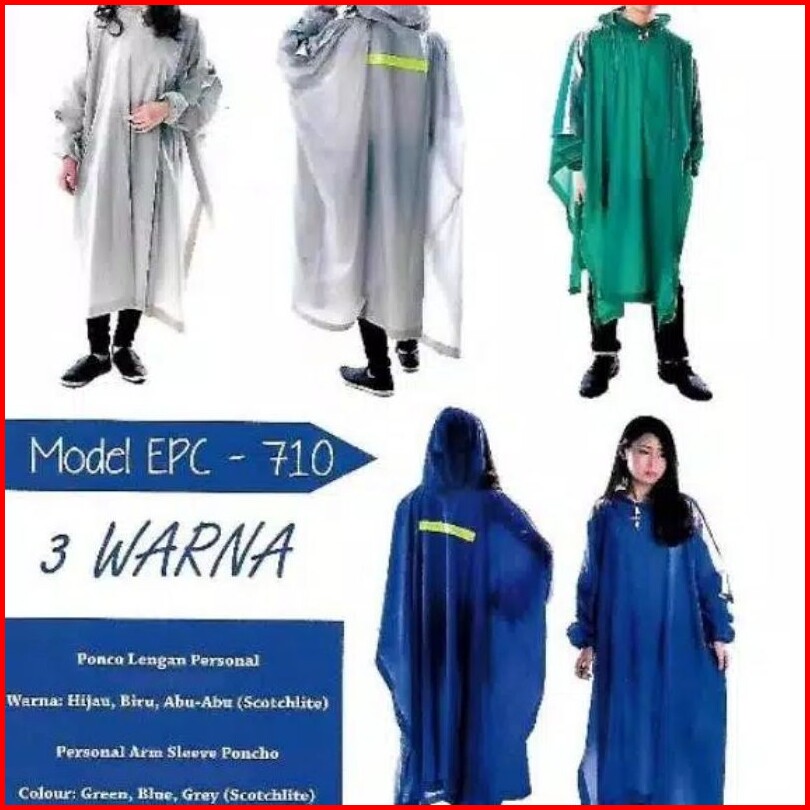 Elmondo Epc 710 Jas Hujan Mantel Ponco Lengan Baju Isi Tangan Personal Abu Hijau Biru Poncho Phonco Pria Wanita Unisex D