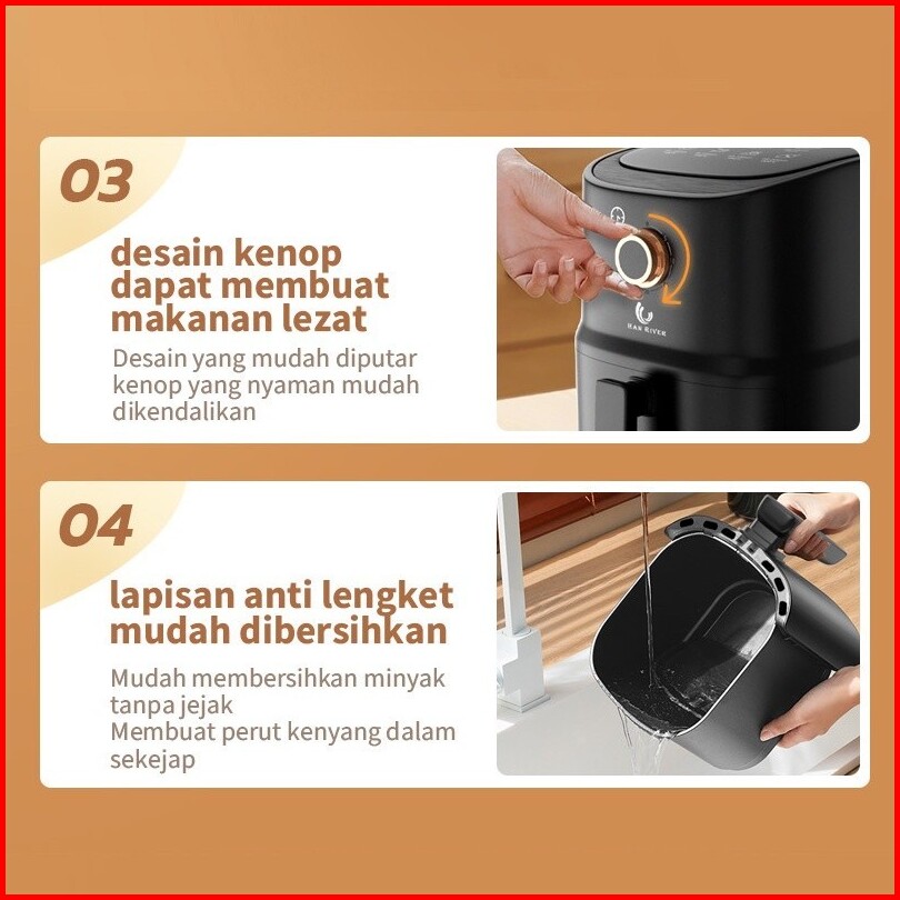 Pengiriman Dari Medanhan River Air Fryer 3.5l Low Power 500w Pemanasan Termostatik Tombol Putar