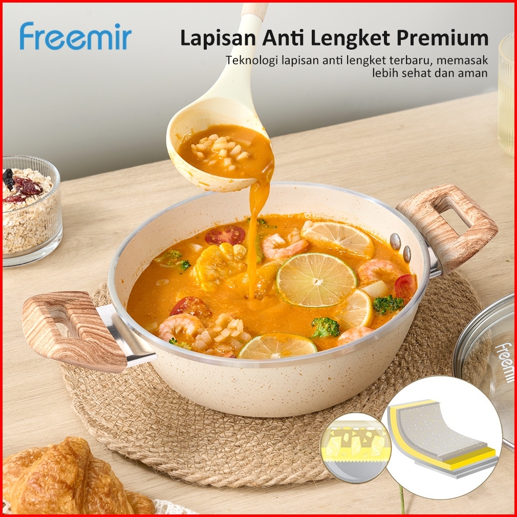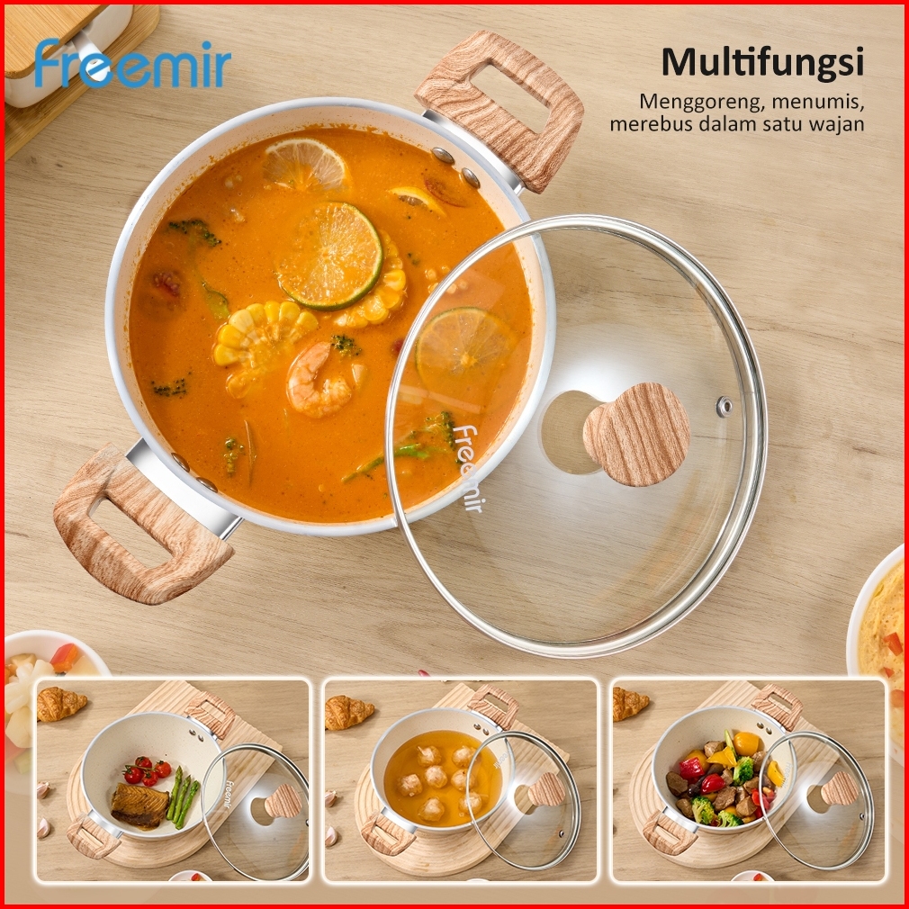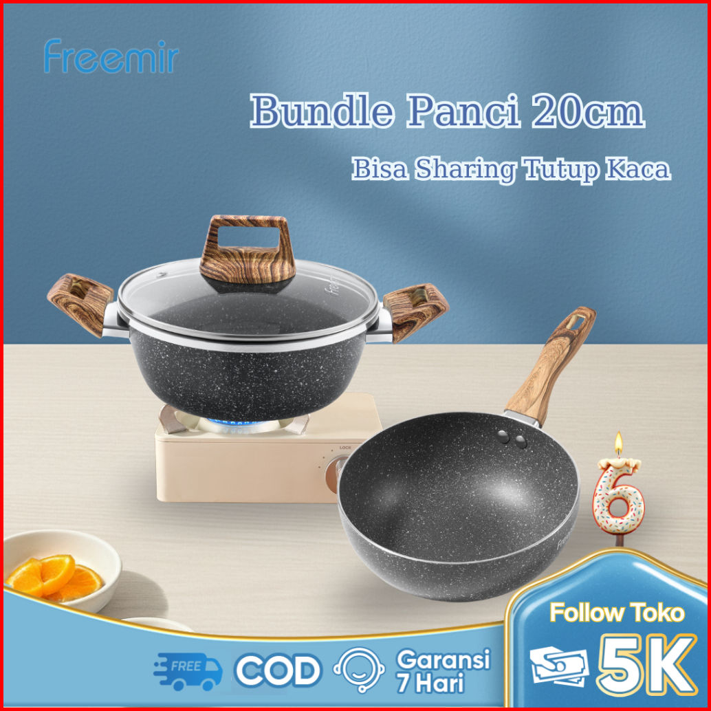 Special Freemir Original 2 Pcs Set Wajan Panci Anti Lengket Penggorengan 20 Cm Sharing Tutup Kaca