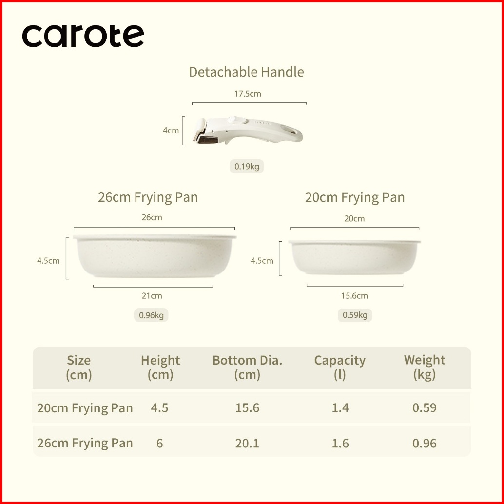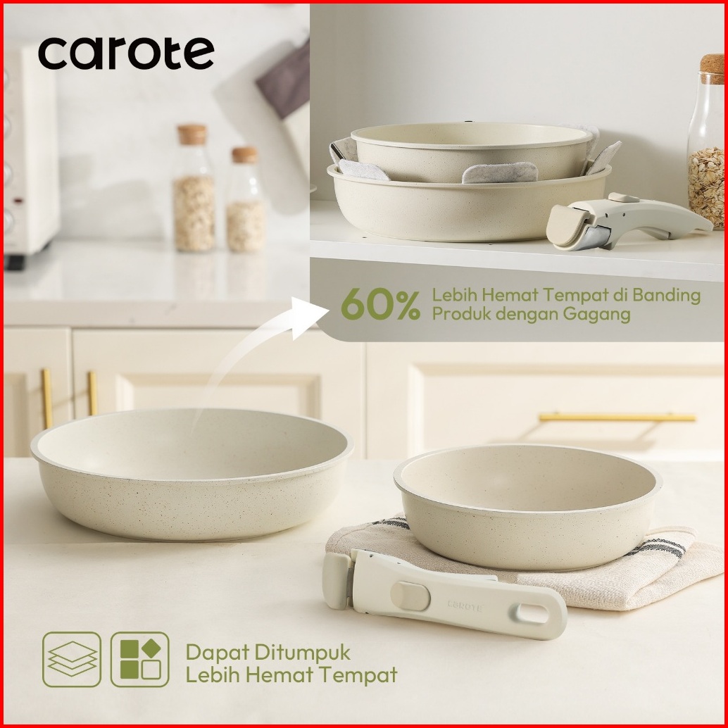 Carote Peralatan Masak Set 3 Pcs Dengan Gagang Lepas Pasang Memudahkan Penyimpanan Lapisan Granit Cocok Untuk Semua Jeni