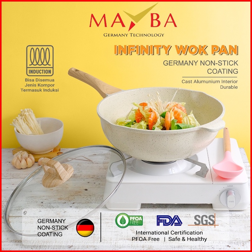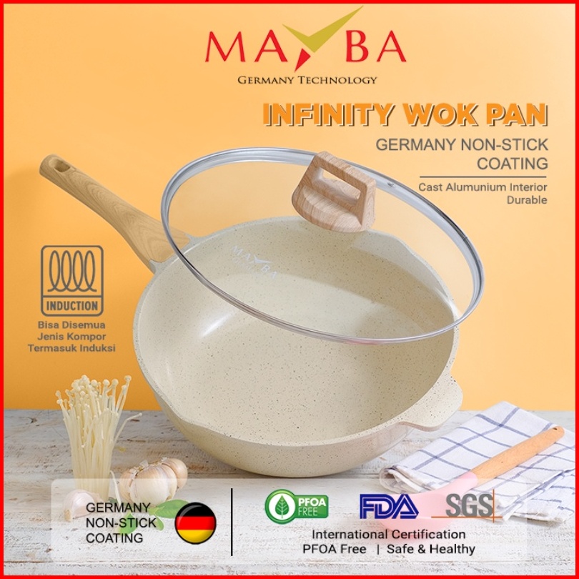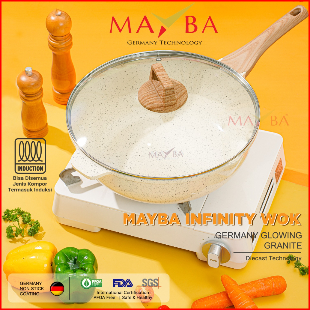 Mayba Panci Wok Pan 24cm Wajan Penggorengan Deep Mayba Infinity Anti Lengket Marble Granit Germany