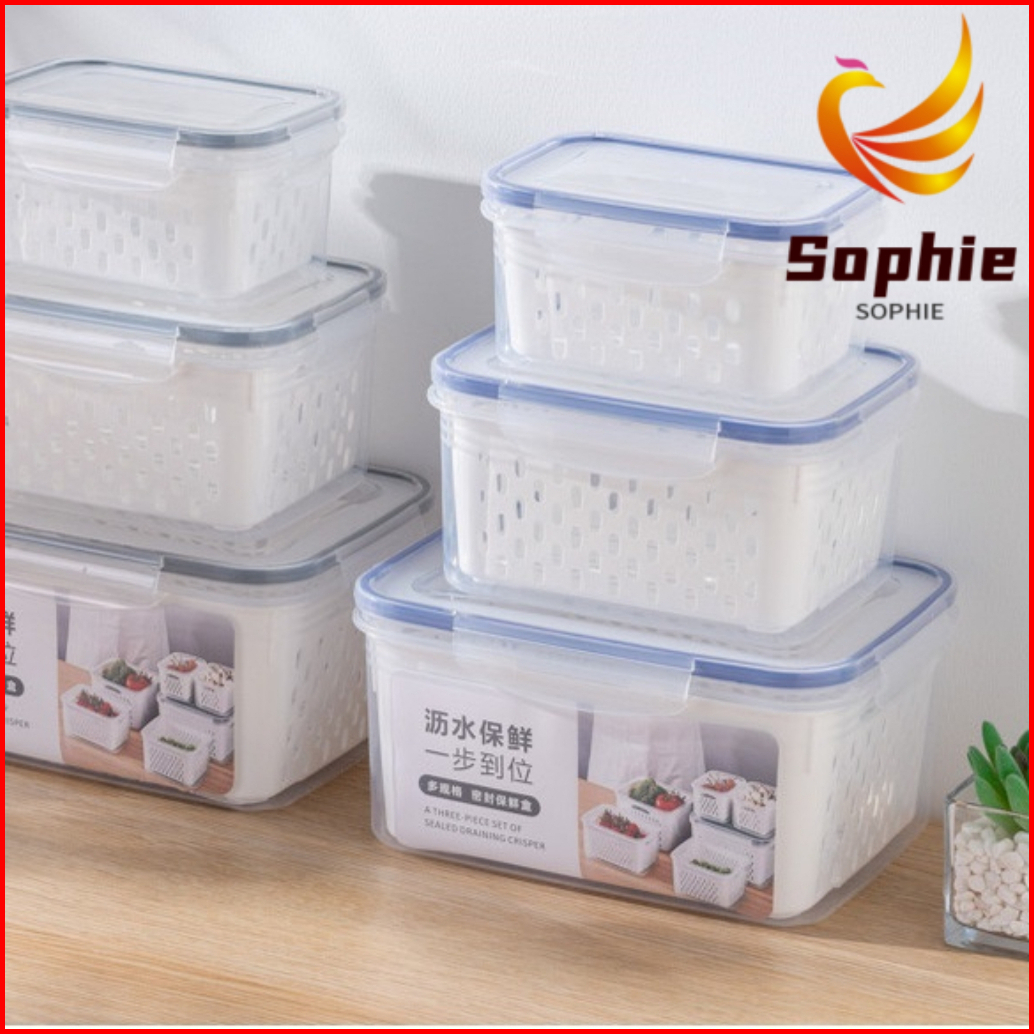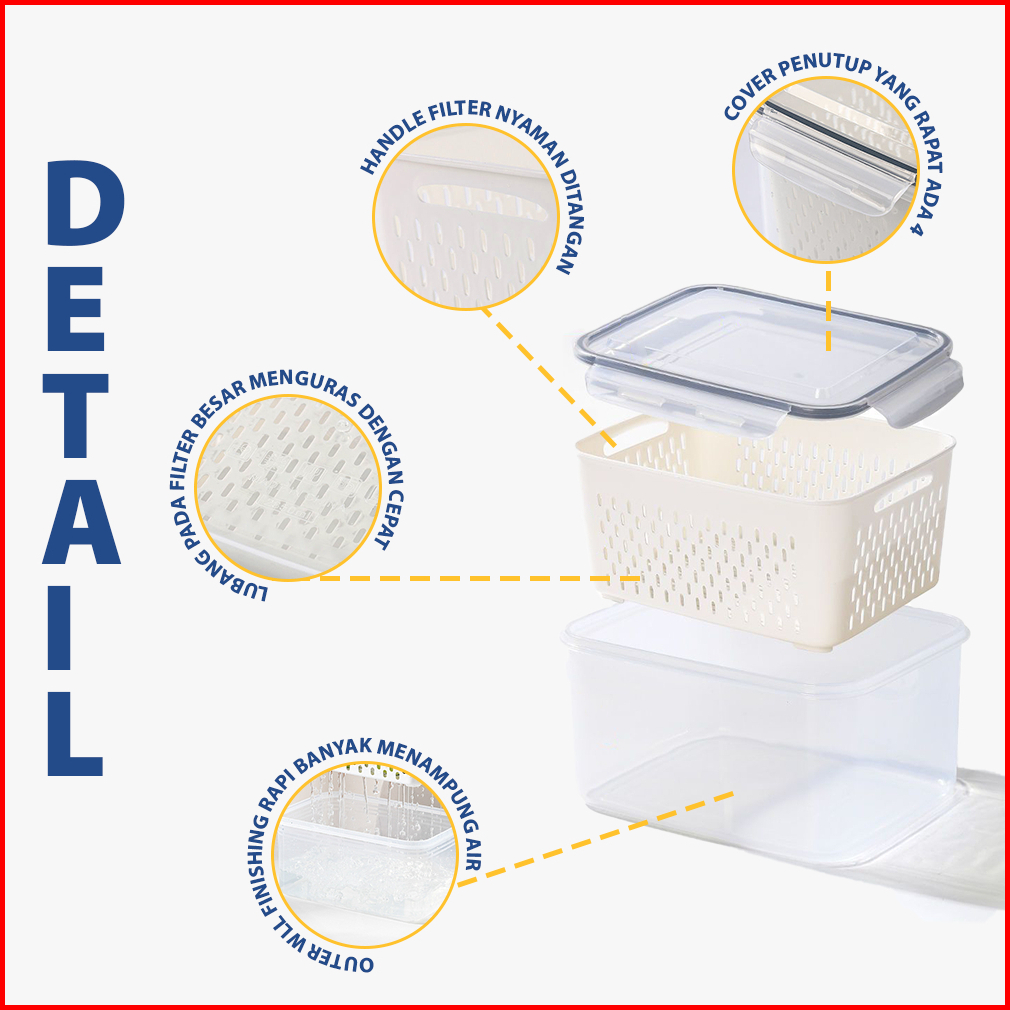Kotak Makanan Dengan Saringan Food Container Storage Box Kotak Penyimpanan Kulkas Food Box