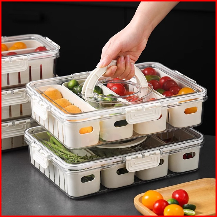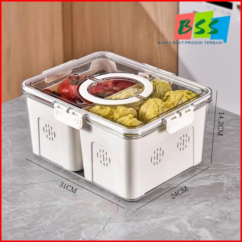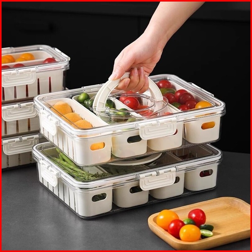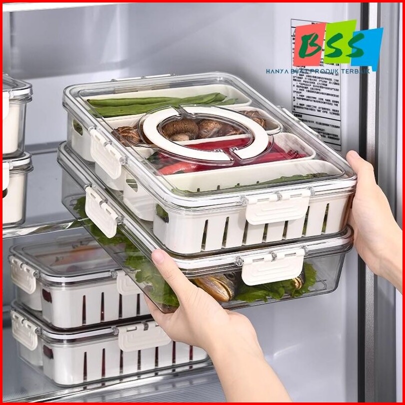 Wadah Penyimpanan Kulkas Dengan Pemisah Dan Penutup Kedap Udara Untuk Penyimpanan Segar Simpan Kotak