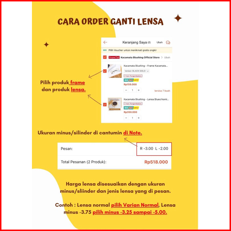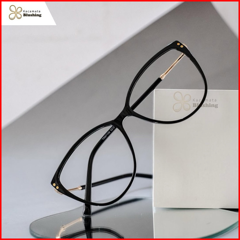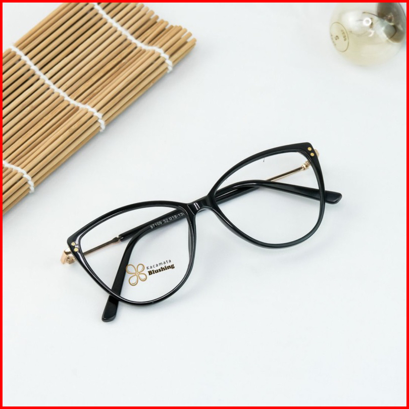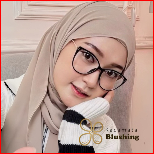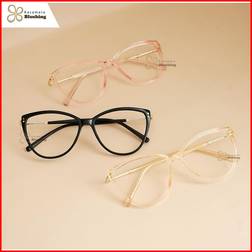 Kacamata Blushing - Frame Kacamata Erina Black - Cat Eye Lonjong Kekinian - Plastik Kuat Tampil Chic Confident