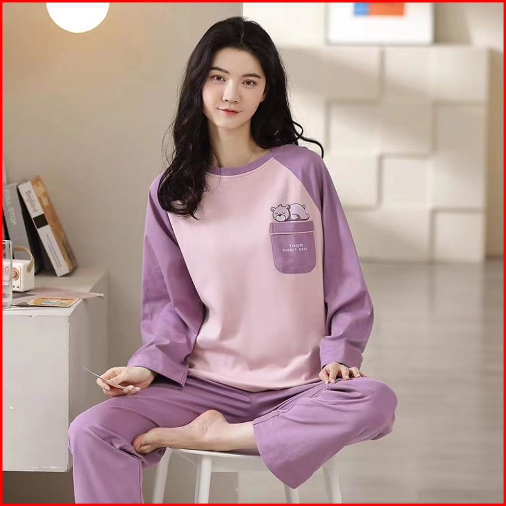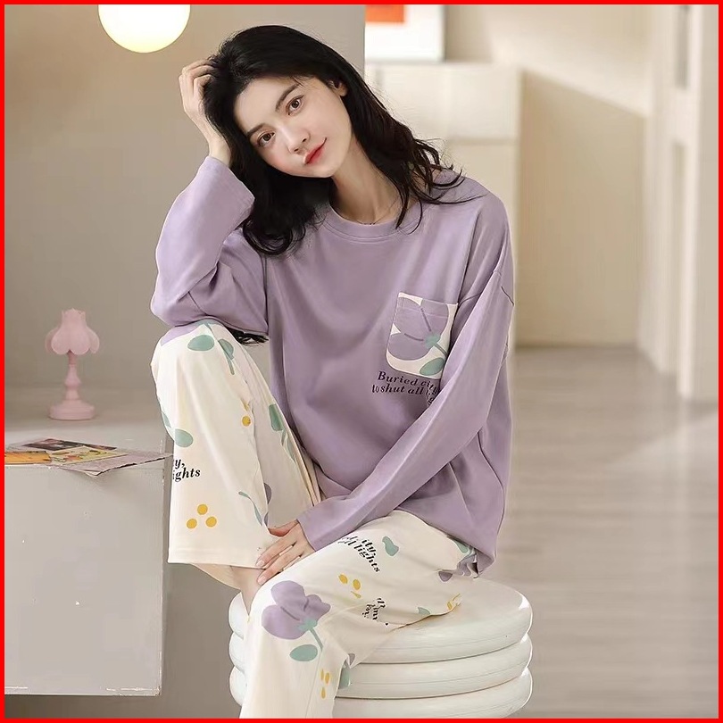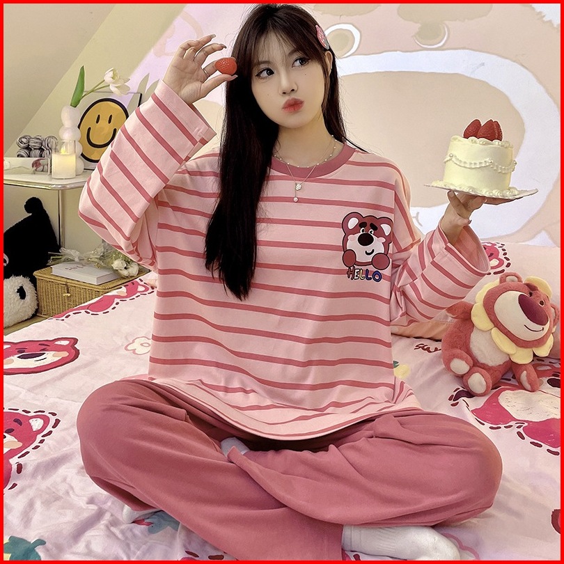 Setelan Piyama Baju Tidur Oversize Sleeping Wear Minimalis Style Musim Dingin Homewear Girl New Looks Editon Motif Carto