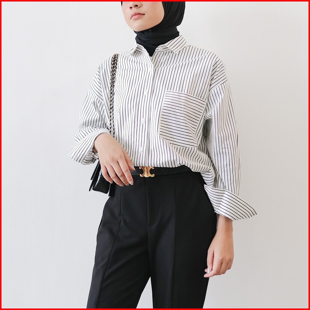 Cottonary Kim Shirt Kemeja Stripe Wanita Kece