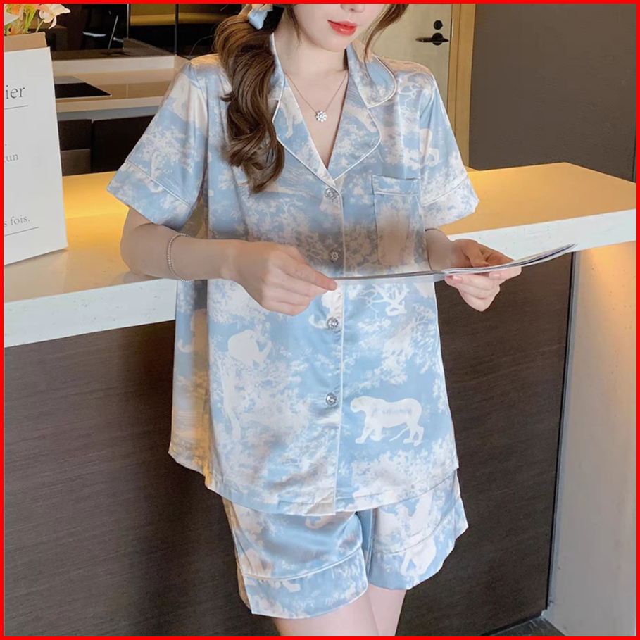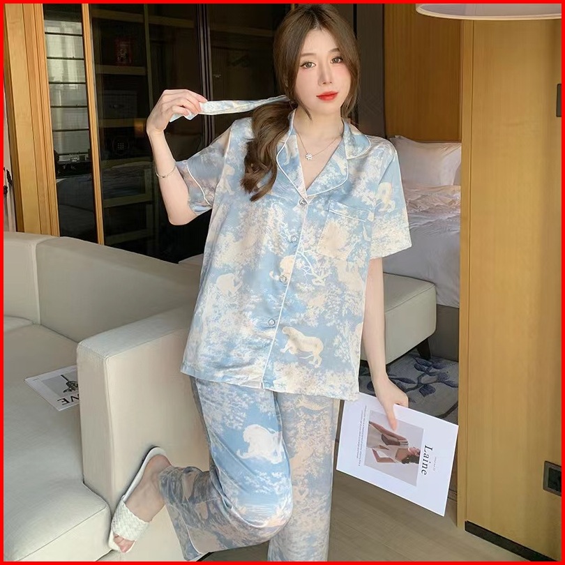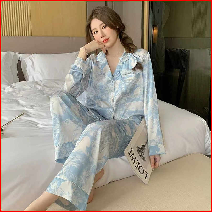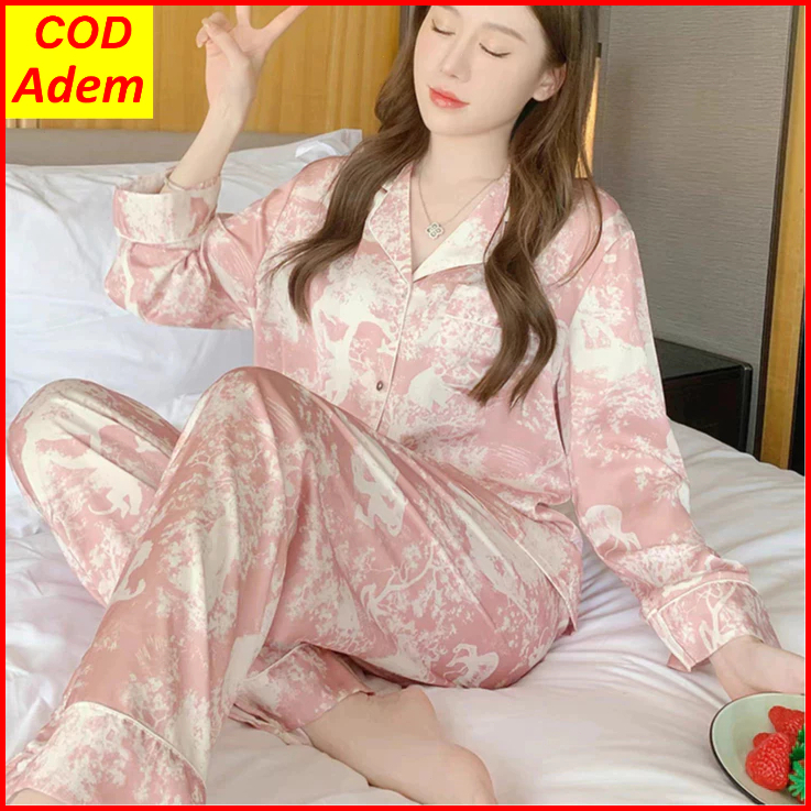 Sleepwear Wanita Korea Style Set Baju Piyama Tidur Wanita Satin Lengan Panjang Tie Dye Terbaru 2025