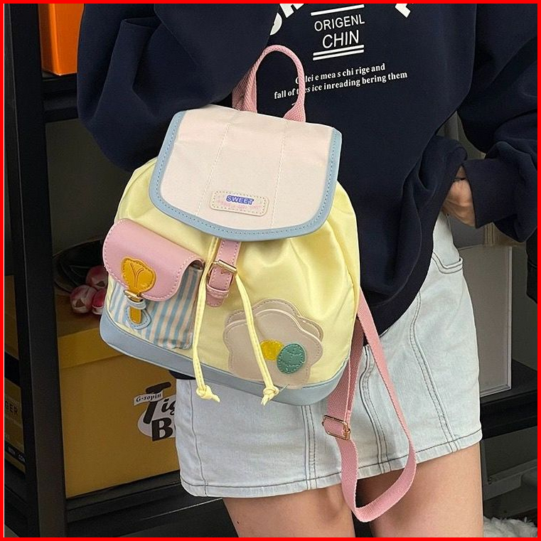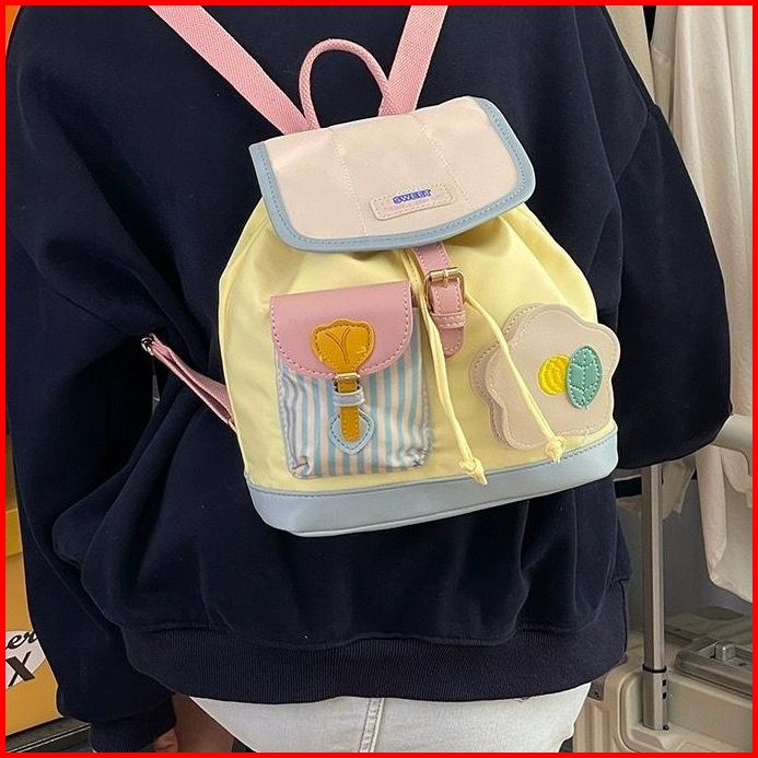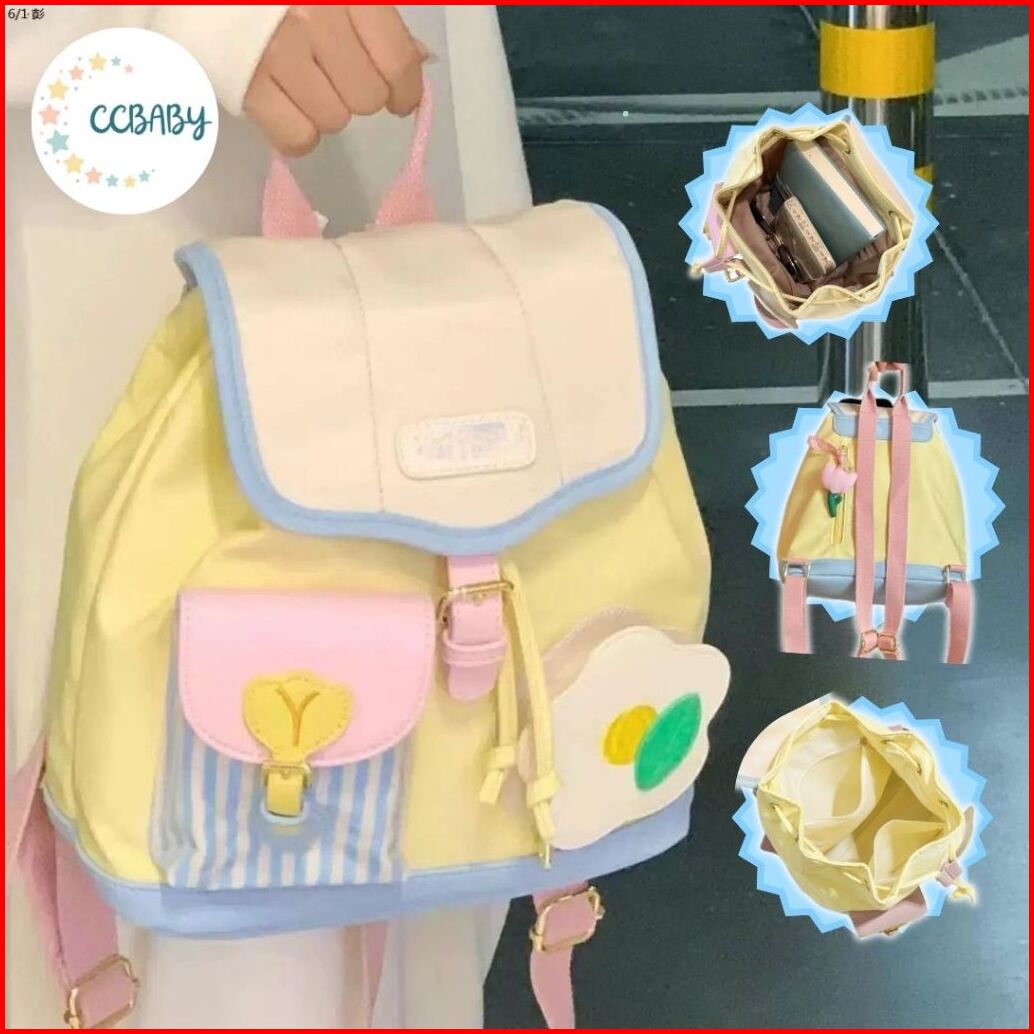 Tas Ransel Mini Tahan Air Tas Wanita Lucu Kapasitas Besar Backpack Sekolah Kuning Telur Kekinian Korean Style
