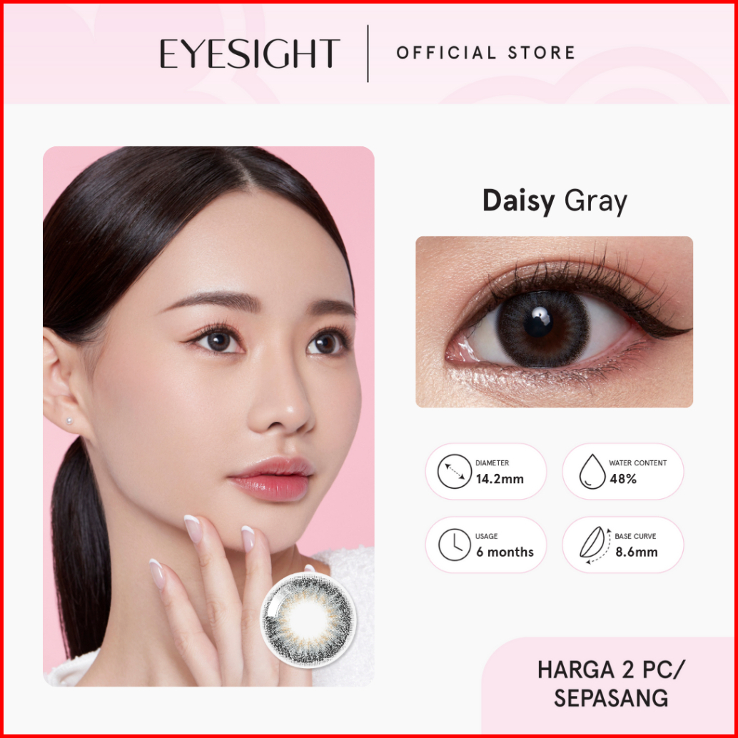 Eyesight Lenses Softlens Bloominc Daisy Gray Softlens Korea Premium 14.2mm Warna Abu Semi Natural Cocok Untuk Daily Atau
