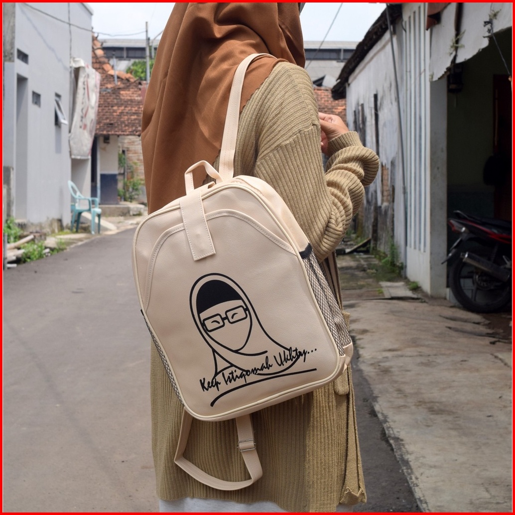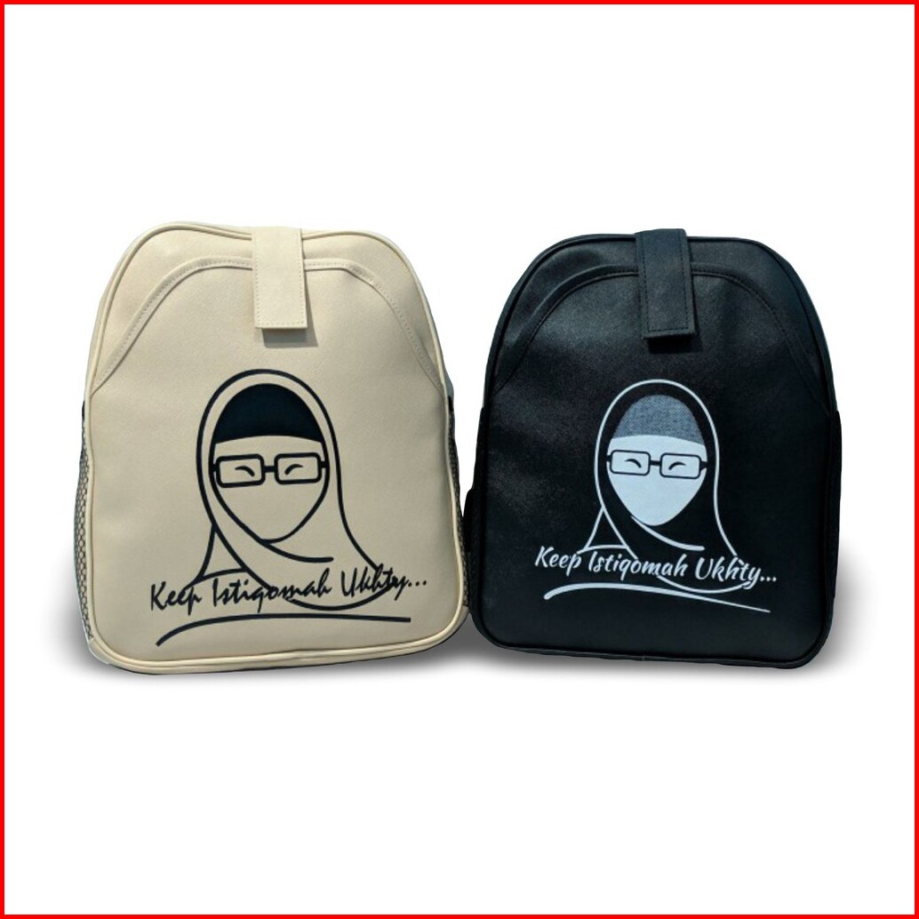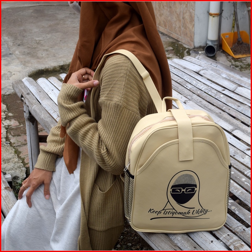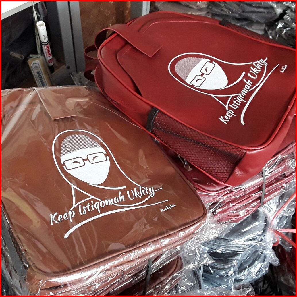 Tas Mini Ransel Bag Muslimah Keep Istiqomah Simpel Maroon Coklat Wanita Cewek 12in
