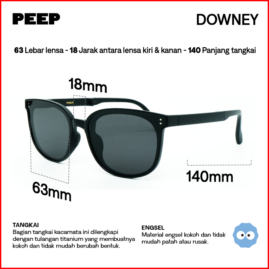 Peep Eyewear - Downey Frame Kacamata Hitam Muka Oversized Lipat Foldable Sunglasses Unisex Pria Wanita