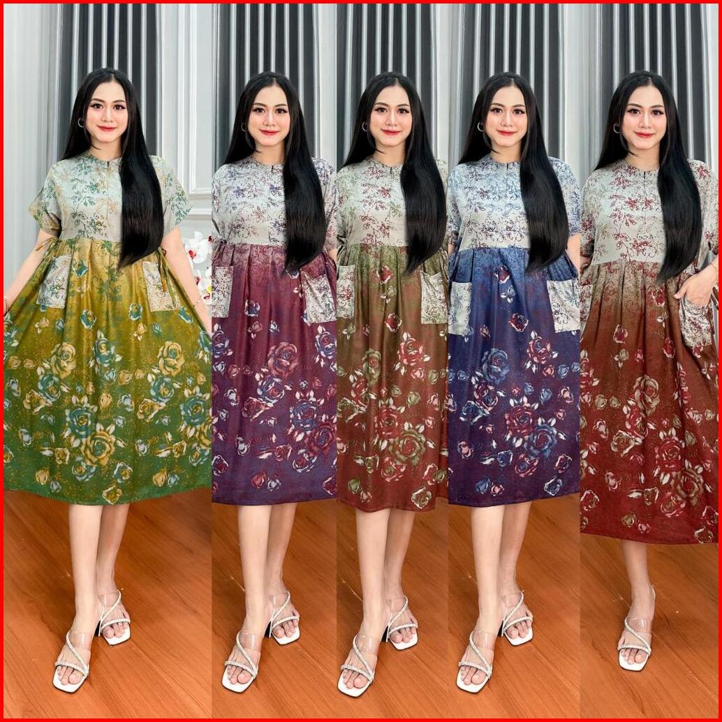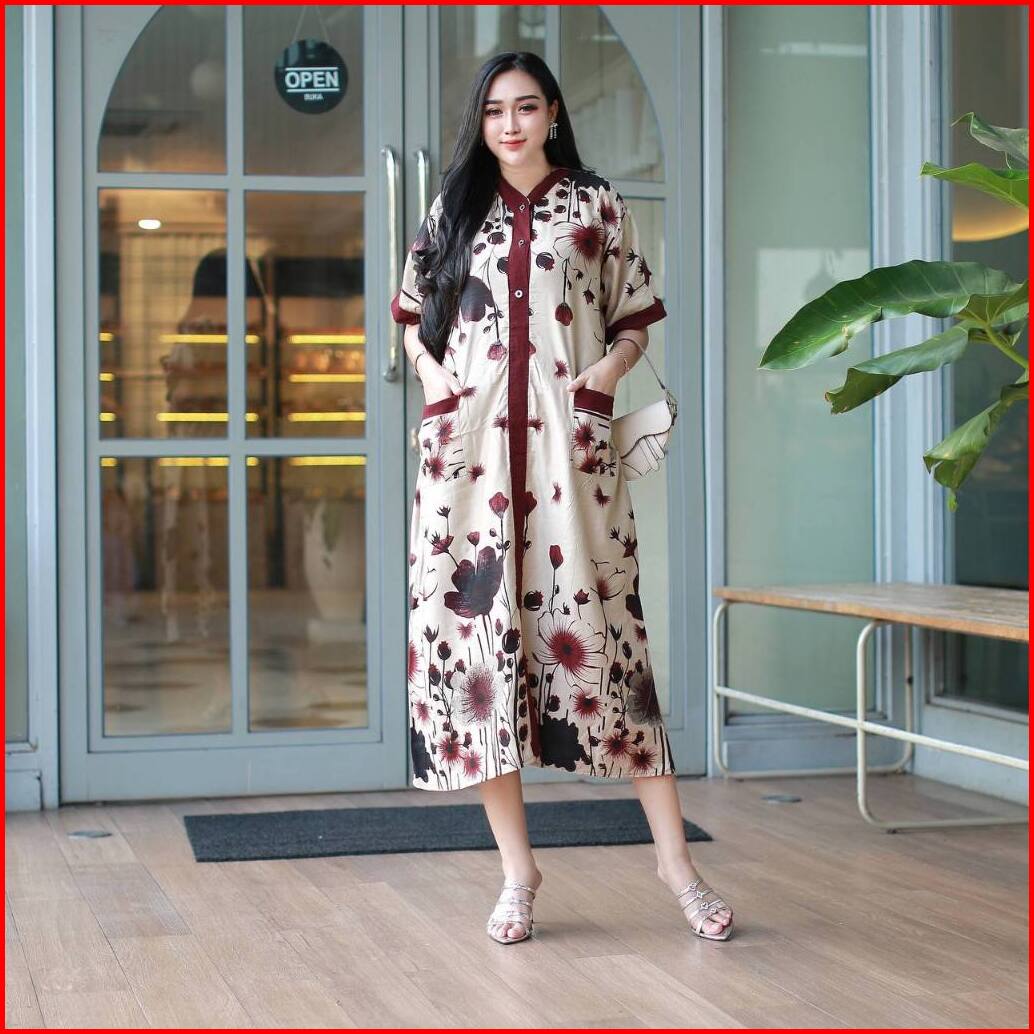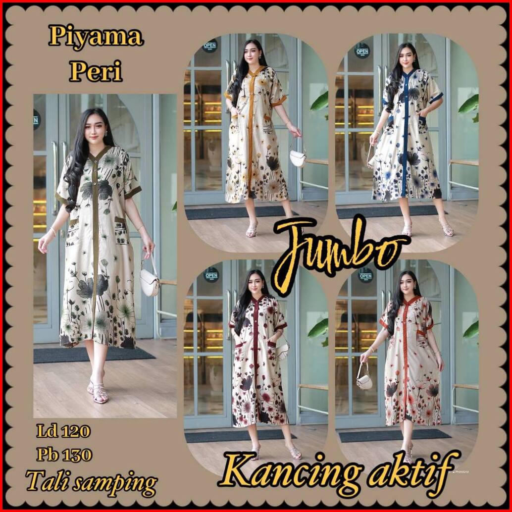 Daster Piyama Peri Jumbo Kancing Busui Kanrong Depan Motif Terbaru
