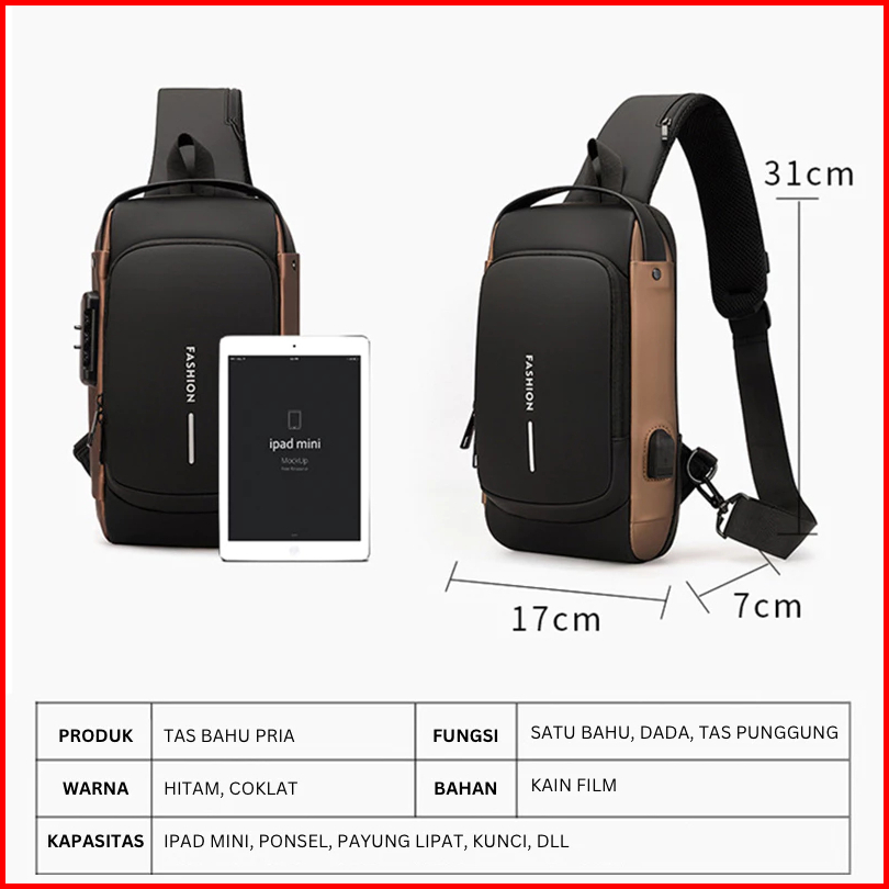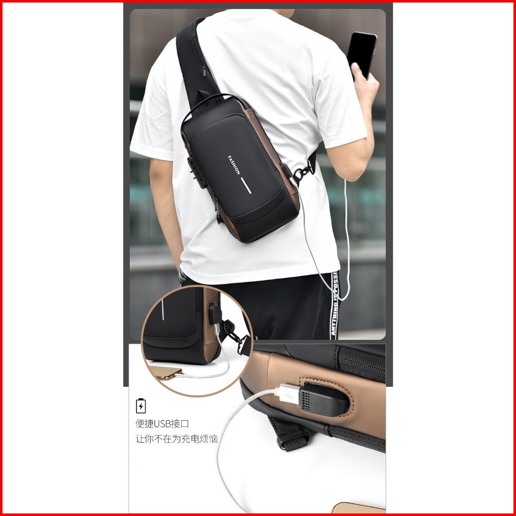 Valshion Tas Selempang Pria Usb Charger Port Waterproof Anti Maling Multifungsi Sport Fashion Premium Import Quality