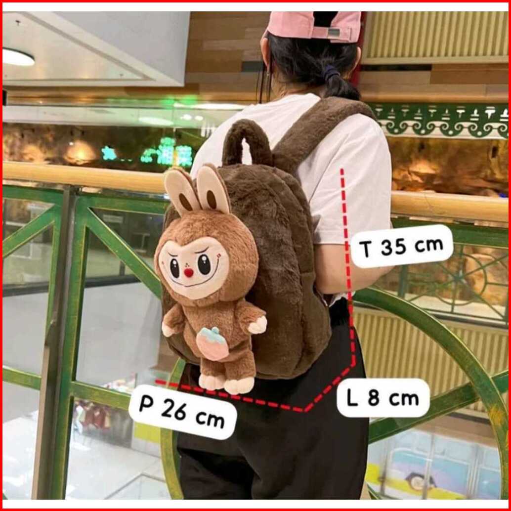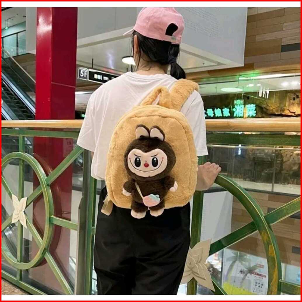 Tas Ransel Labubu Bahan Bulu Motif Labubu Lucu Kekinian Tas Anak Viral