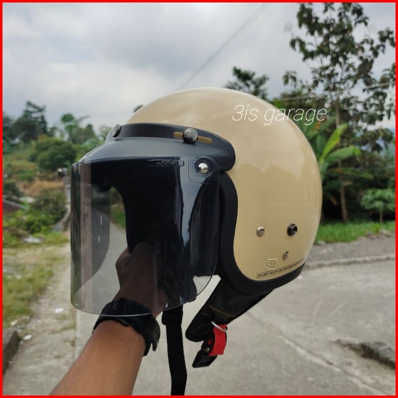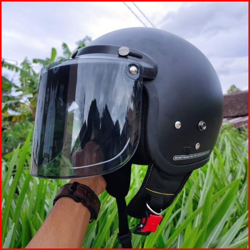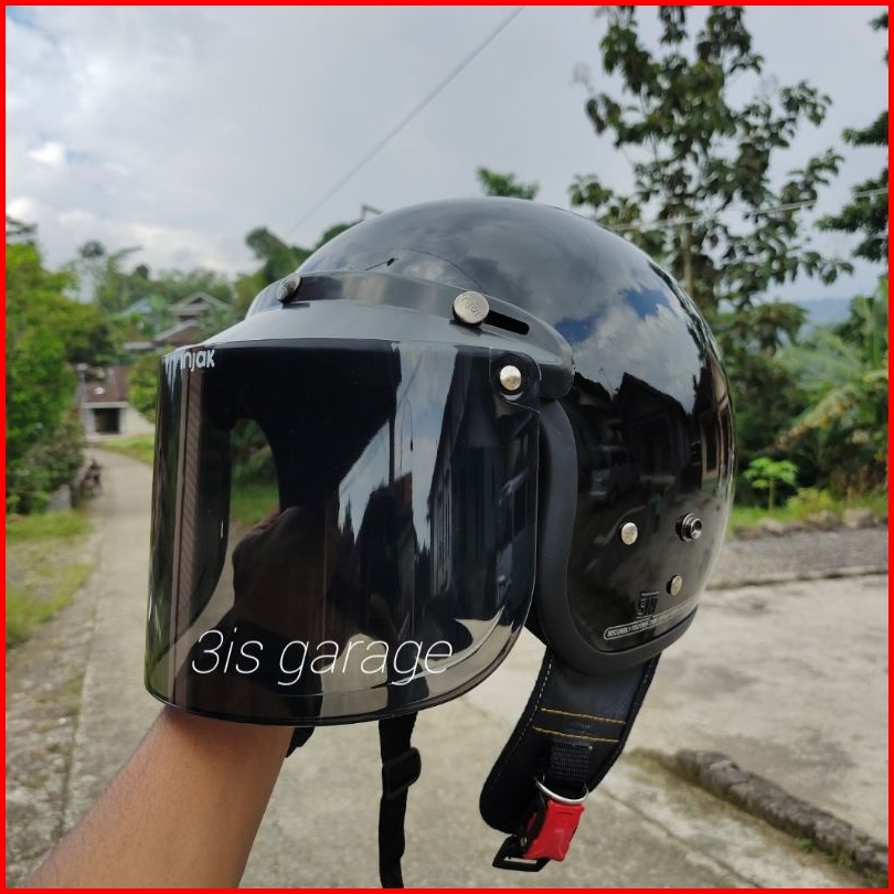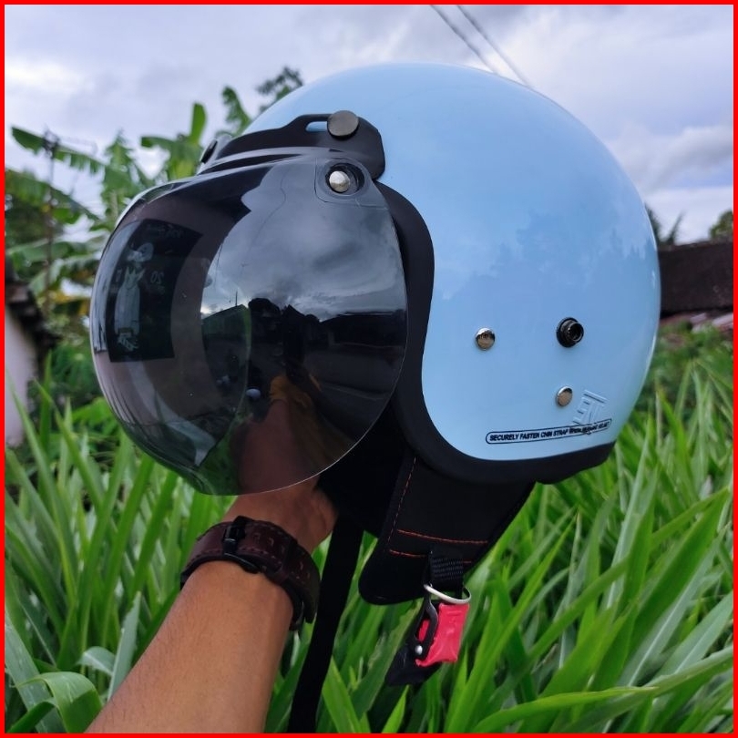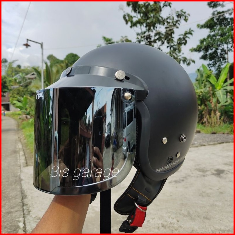 Helm Bogo Dewasa Kaca Datar Full Leher Sni Pria Wanita