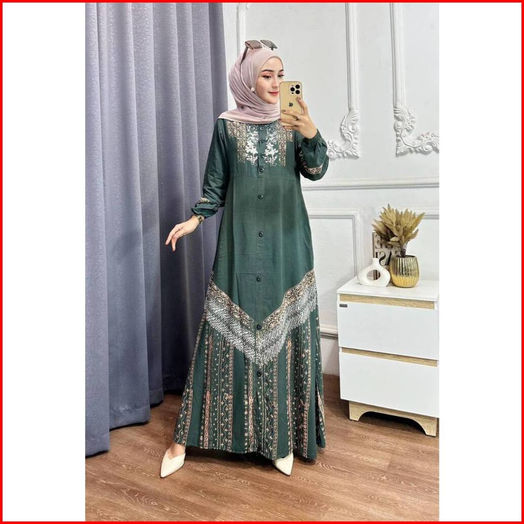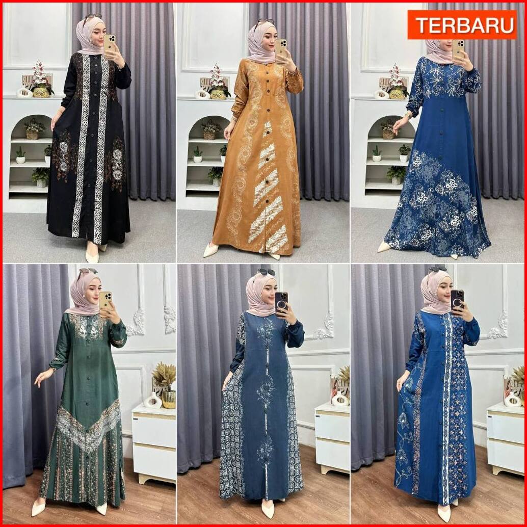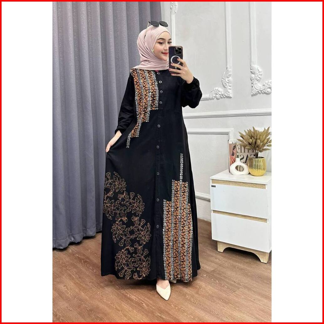 Adam Fasshion - Gamis Twill Rayon Premium Model Kancing Terbaru Jumbo Syari Kekinian Batik Cap