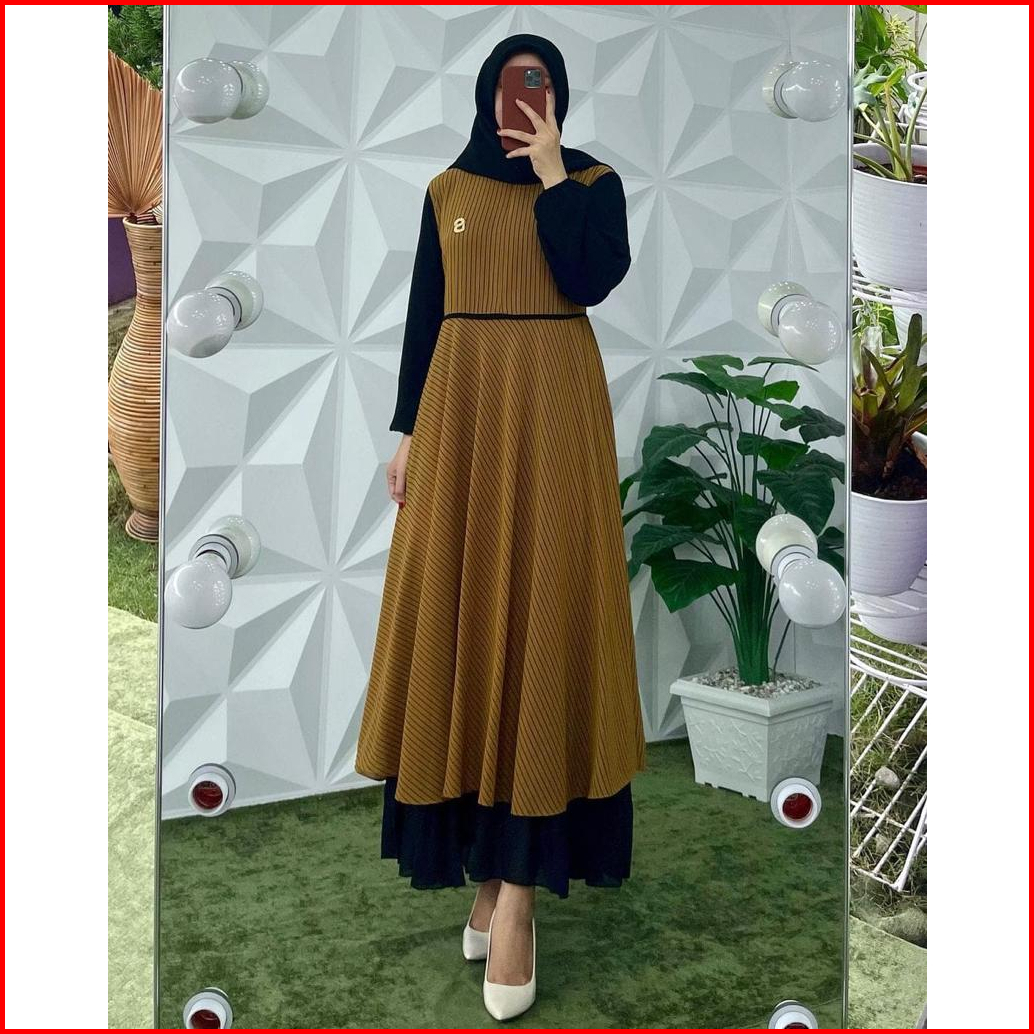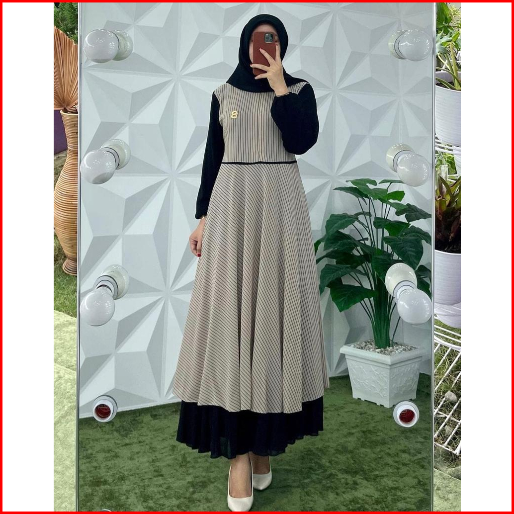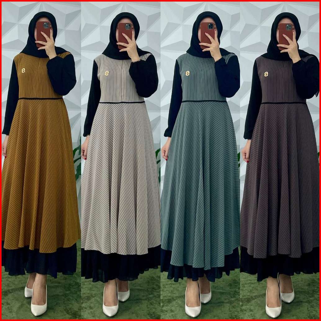 Gamis Ceruty Salur Variasi Cardigan Satu Jahitan Gamis Salur Gamis Cardigan Dress Salur Dress Terbaru Gamis Viral Gamis