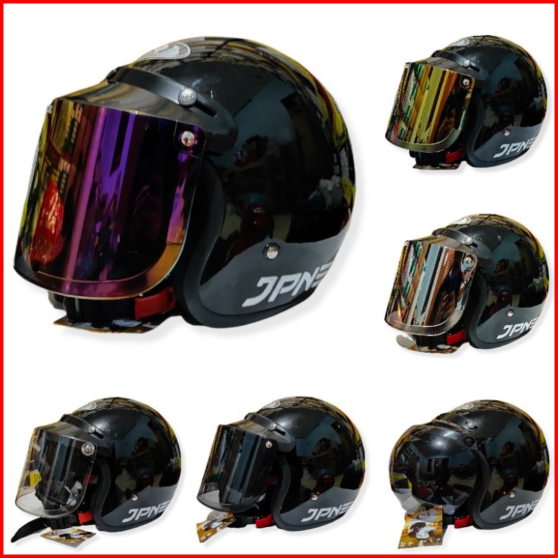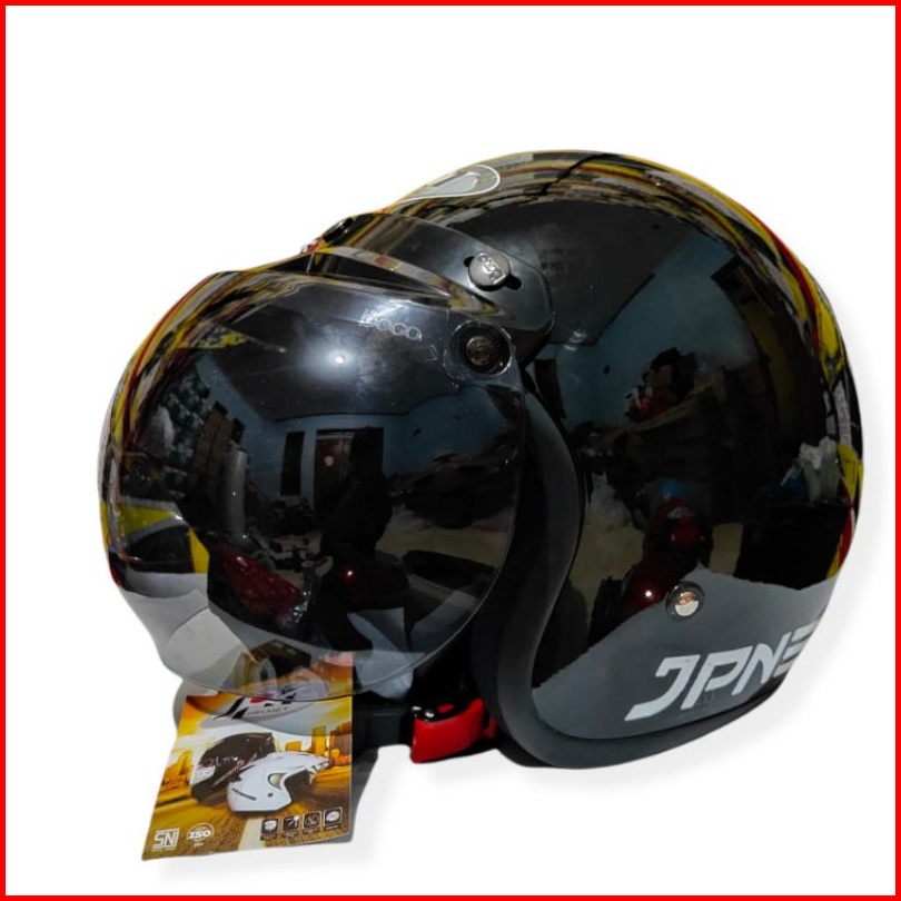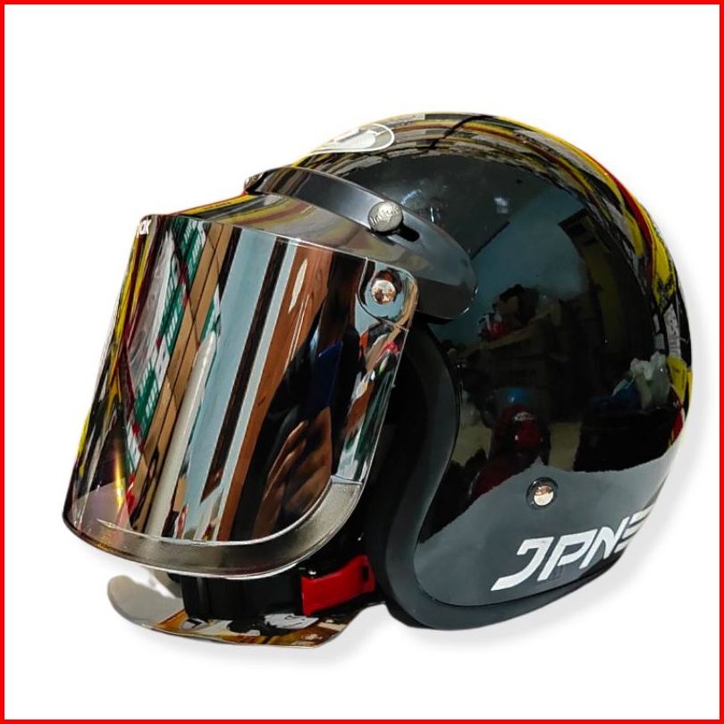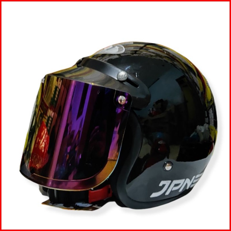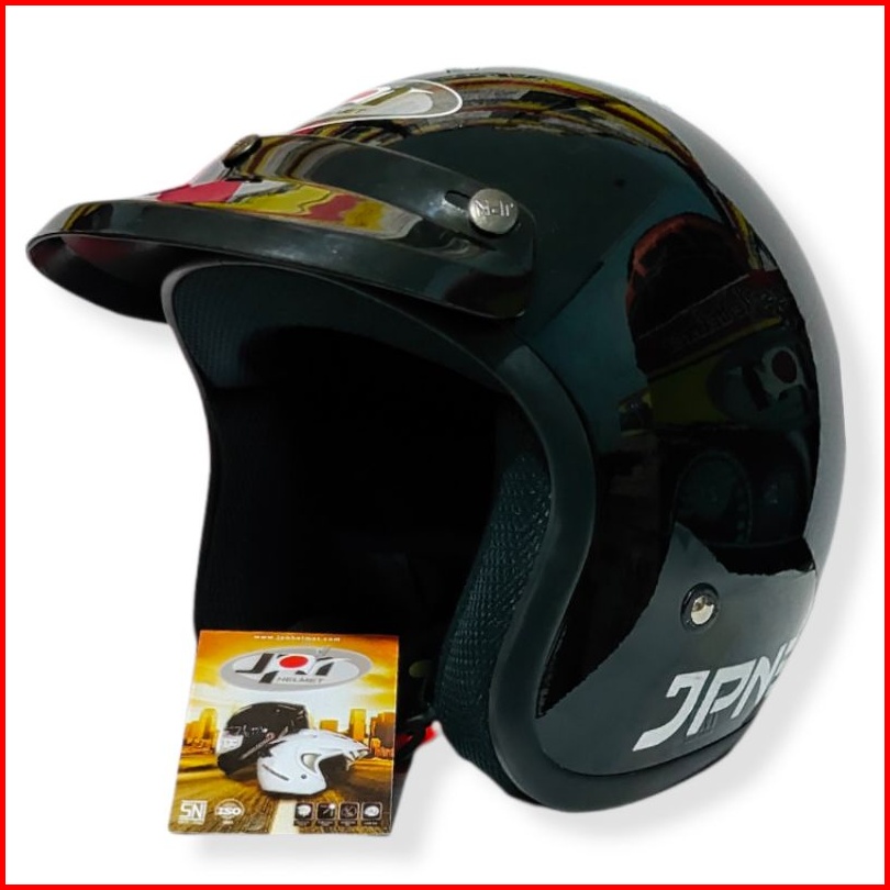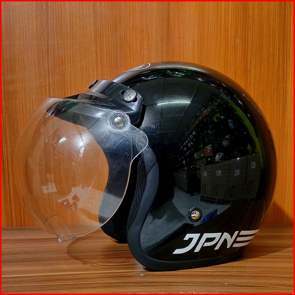 Helm Jpn Retro Arc Hitam Glossy Kaca Datar Cembung