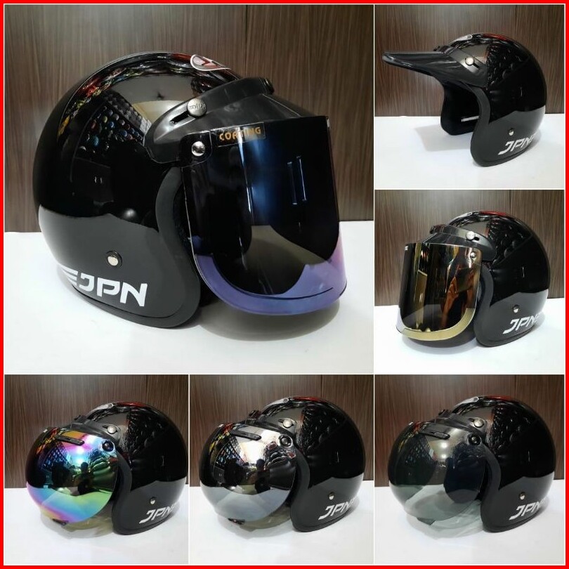 Helm Bogo Jpn Retro Hitam Metalic Sni 3 Varian
