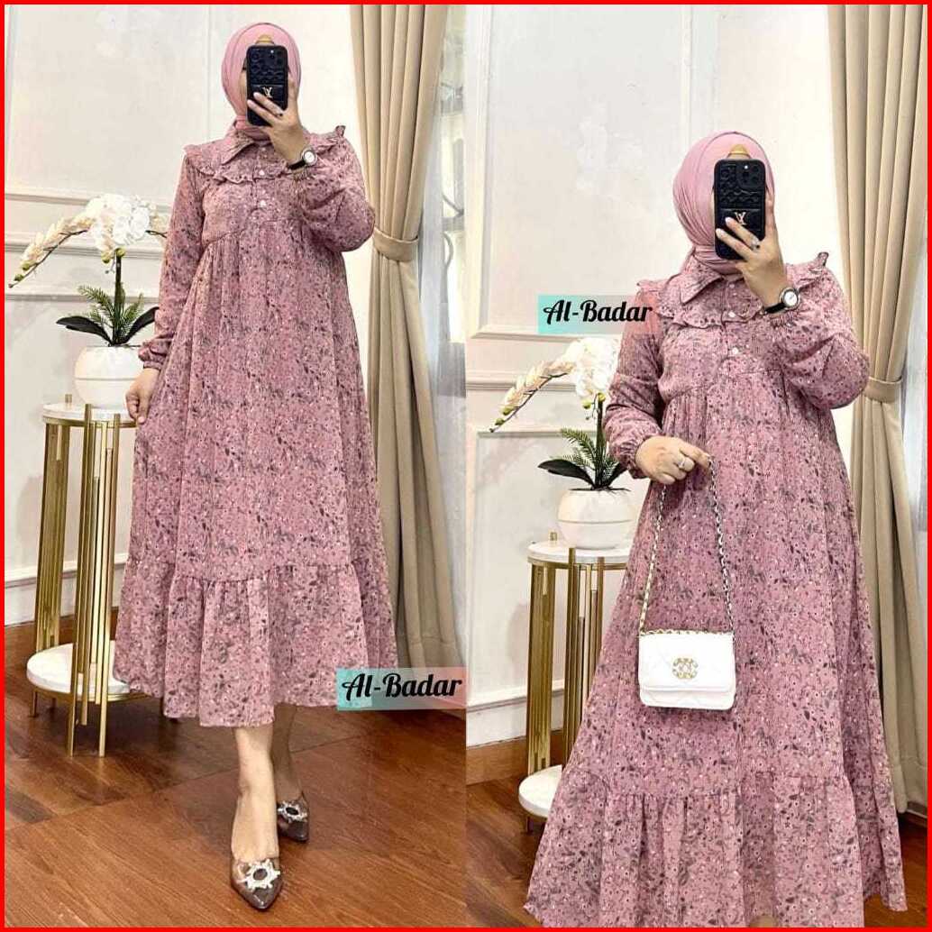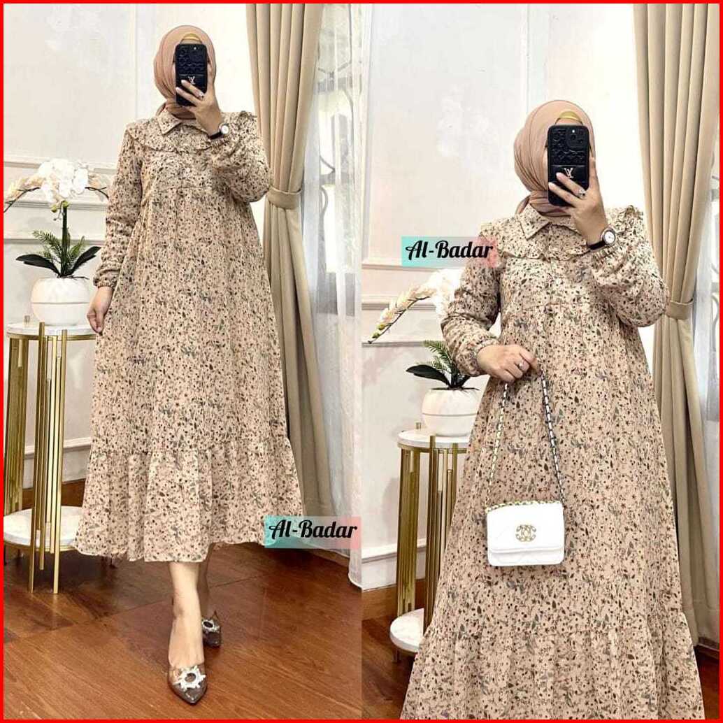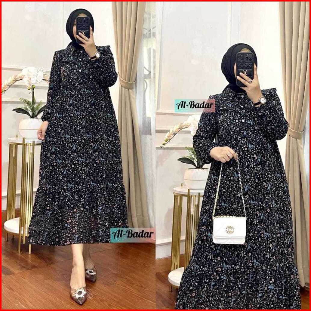 Terbaru Long Dres Midi Nuraa Motif Bunga Big Size Ukuran Jumbo Gratis Ongkos Kirim Terbaru