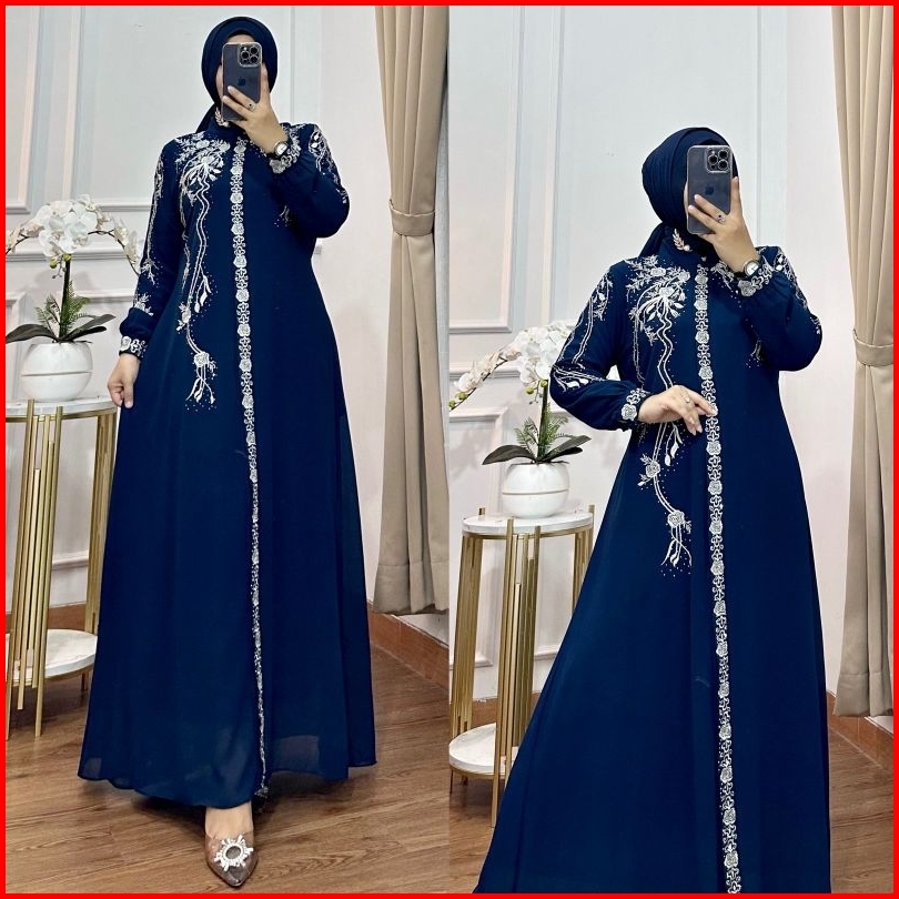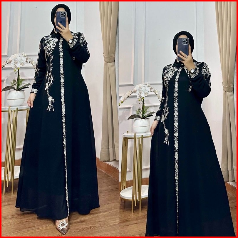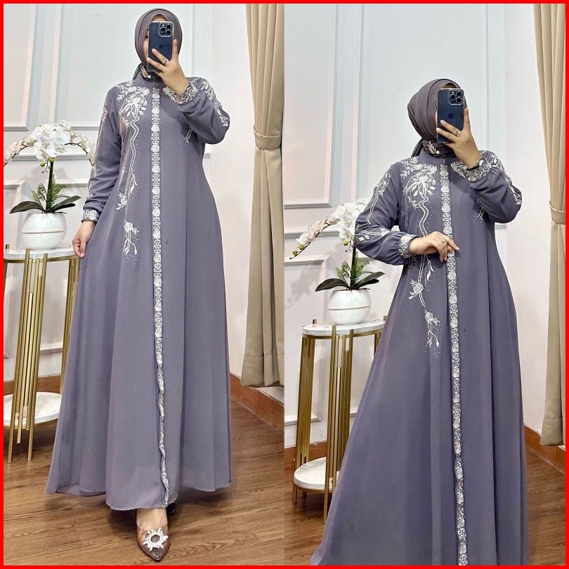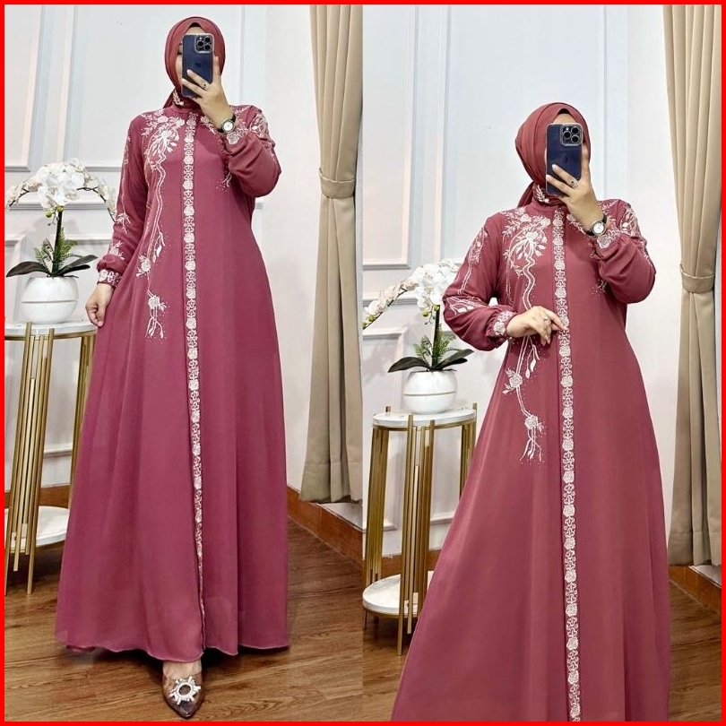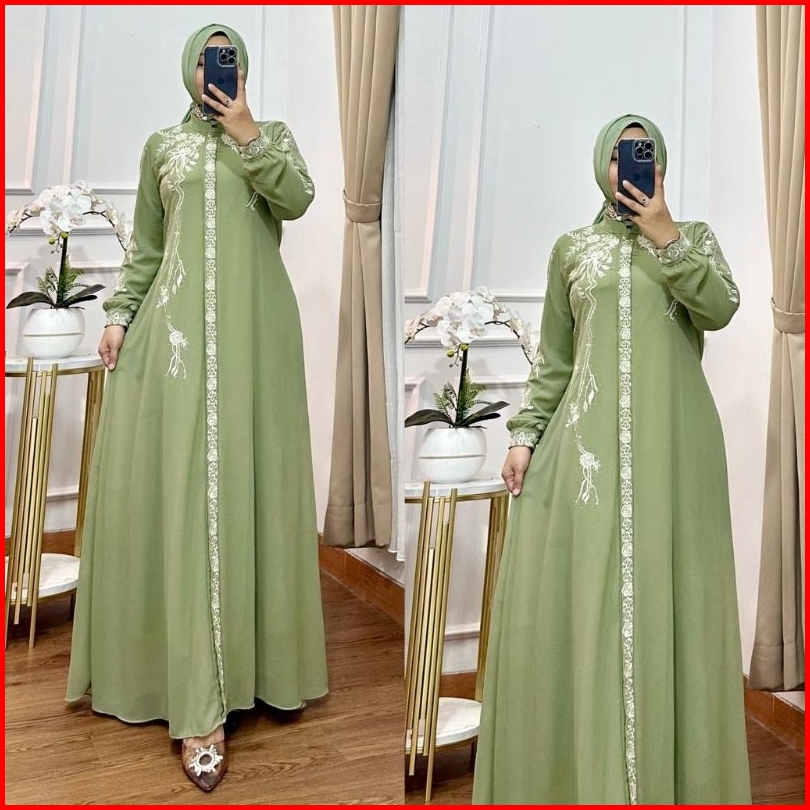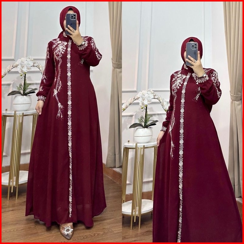 Nura Collection - Bordir Aulia - Baju Gamis Wanita Model Terbaru Bahan Ceruty - Gamis Bordir Terbaru - Gamis Seragaman P