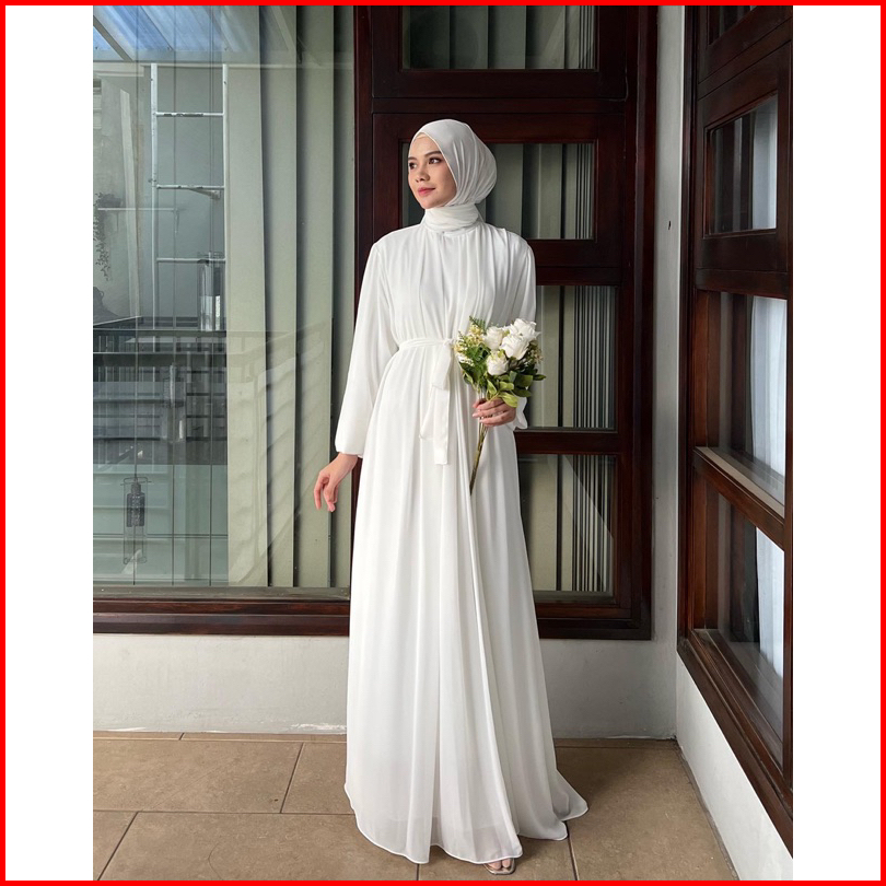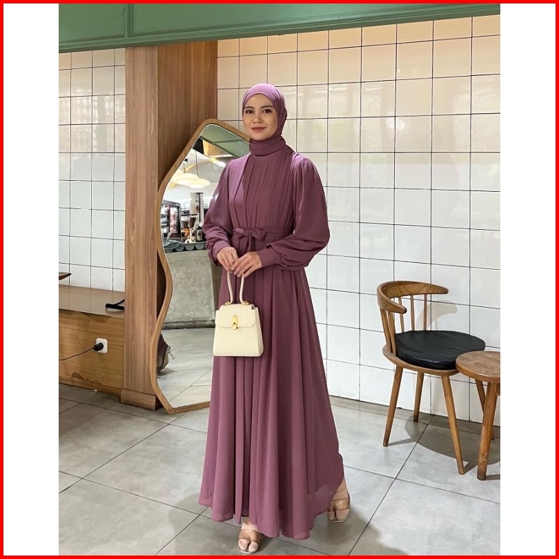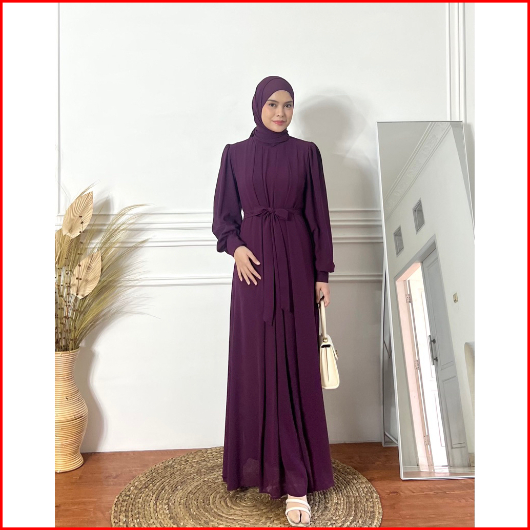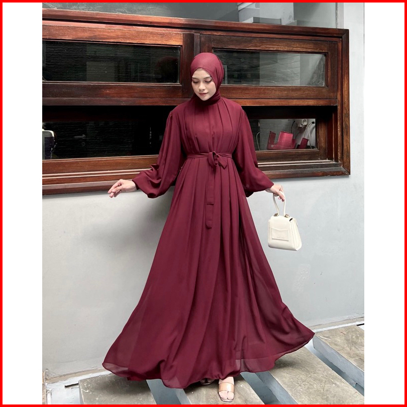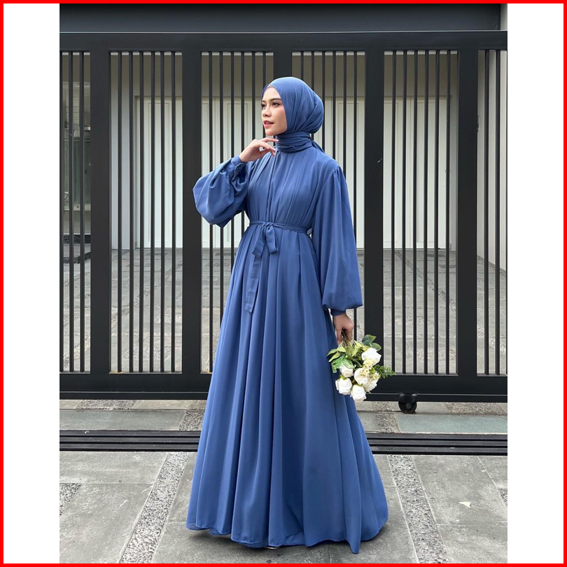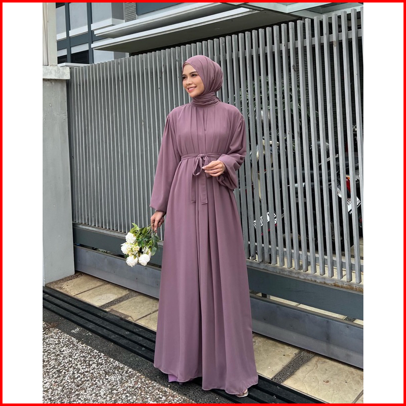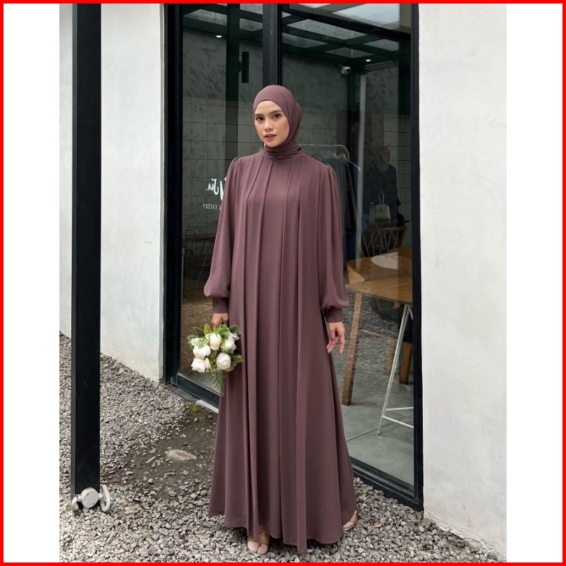 Elmiza - Nahla Dress Free Pashmina Bahan Ceruty Baby Doll Abaya Gamis Wanita Umroh Size Xs - Xxl