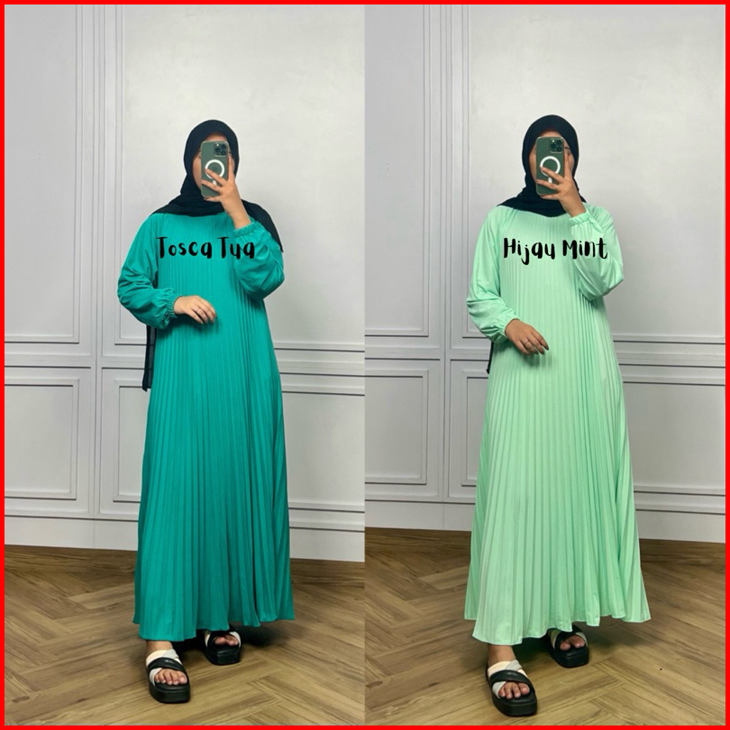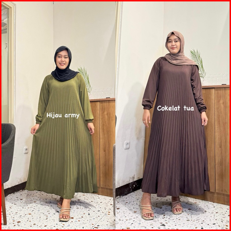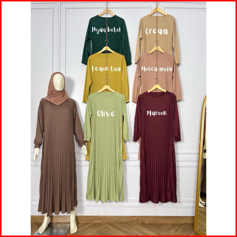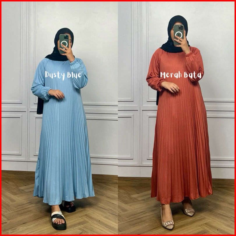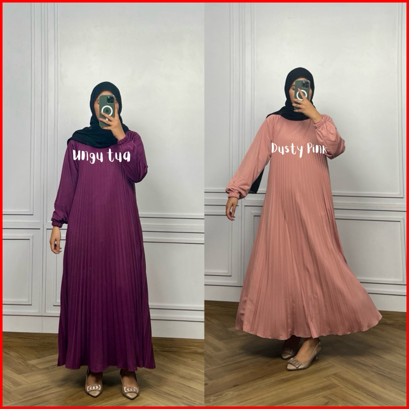 Fwr Shop - Gamis Plisket Payung Tangan Panjang Dress Plisket Gamis Plisket Payung Maxy Dress Pleats Pleats Dress Inner D
