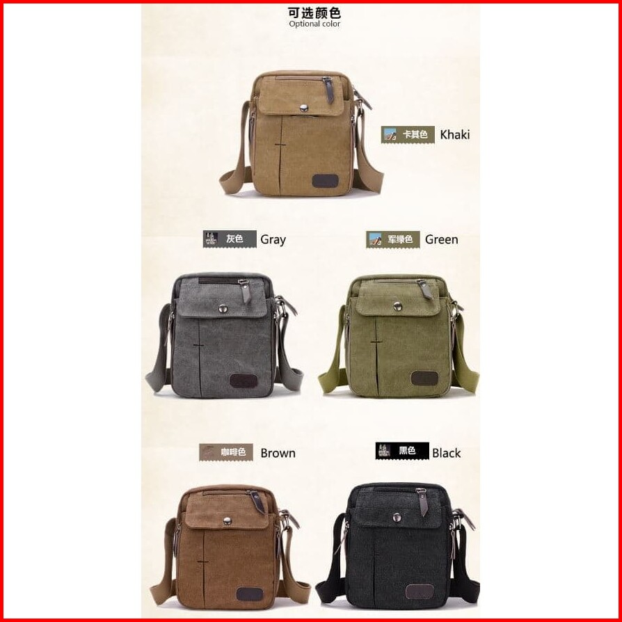 Tas Bahu Selempang Kanvas Pria 6 Warna 20x9x23 Cm
