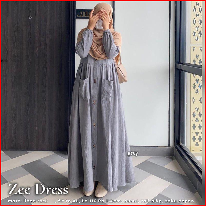 New Zee Dress Gamis Wanita Terbaru Matt Linen Rami Fashion Wanita Kekinian Dress Terlaris Kf