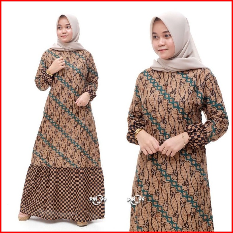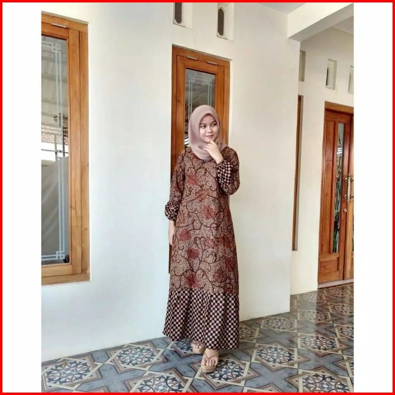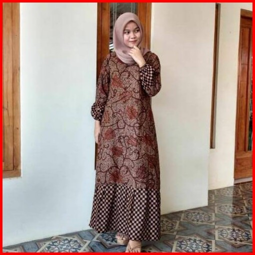 Gamis Batik Manggar Gamis Dewasa Baju Batik Kombinasi Sambungan Bawah Tangan Karet