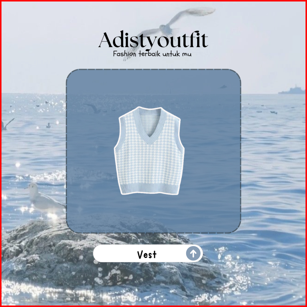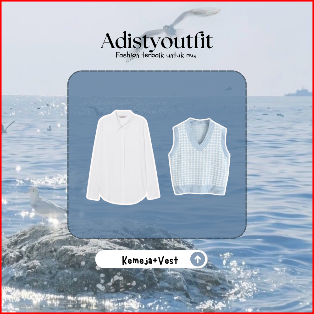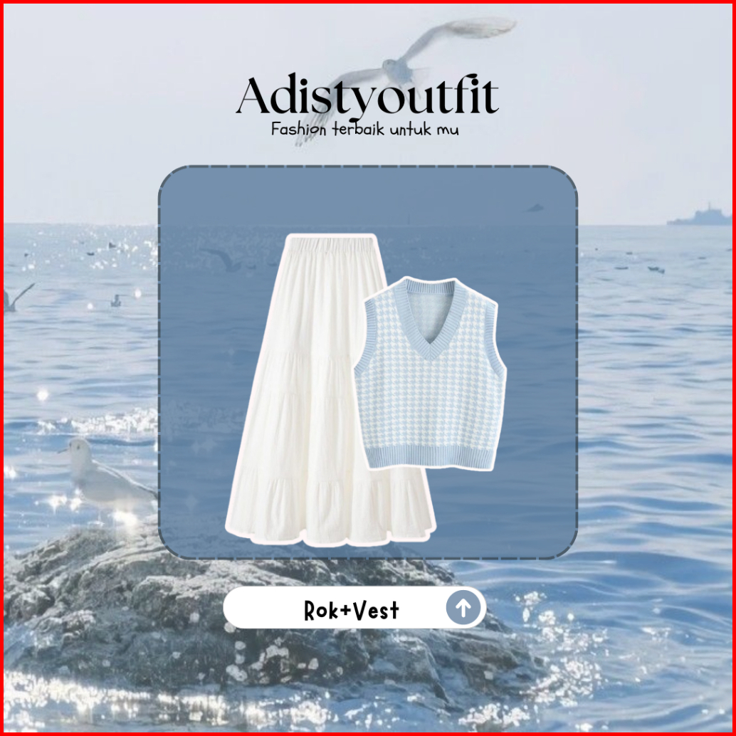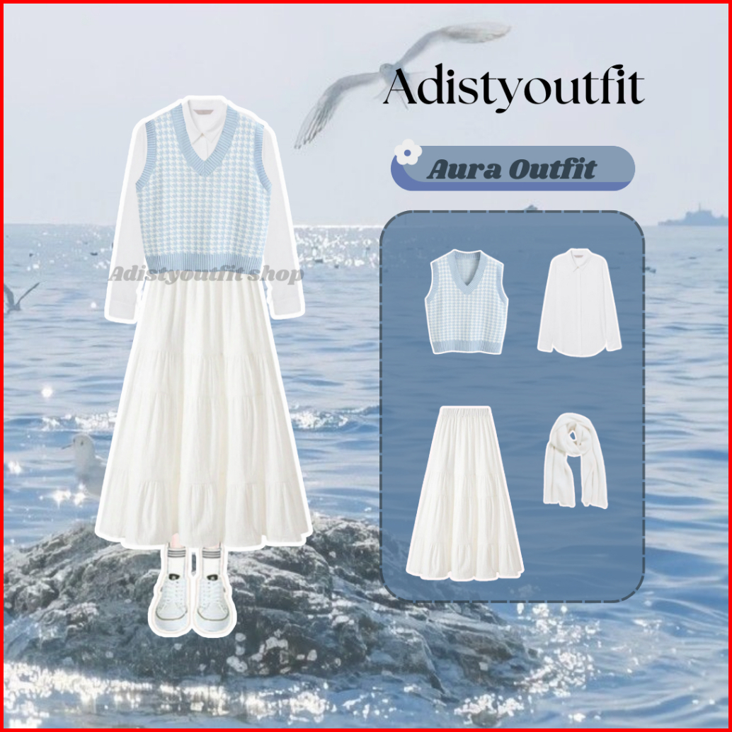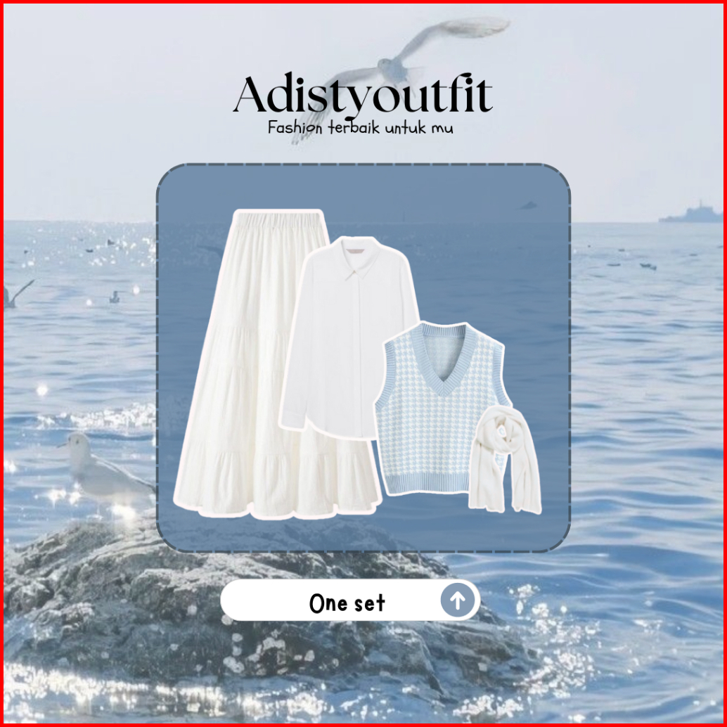 One Set Outfit Korea Korean Style Outfit Ulzzang Set 57 Vest Soft Blue Rok