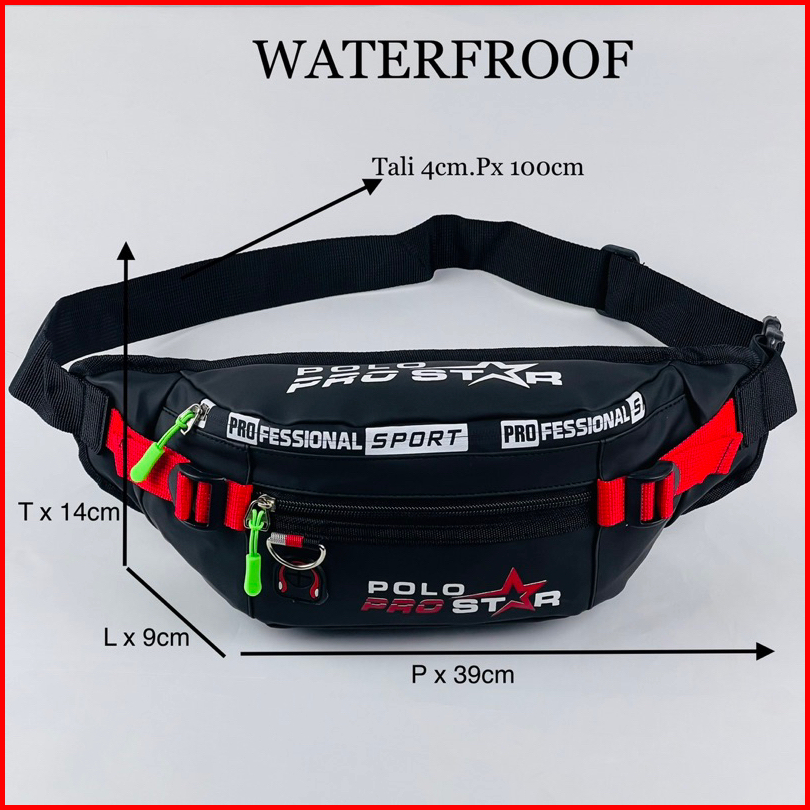 Waistbag Waterproof Bahan Ballon Anti Air Original Polo Prostar Tas Pinggang Tas Selempang Bahu
