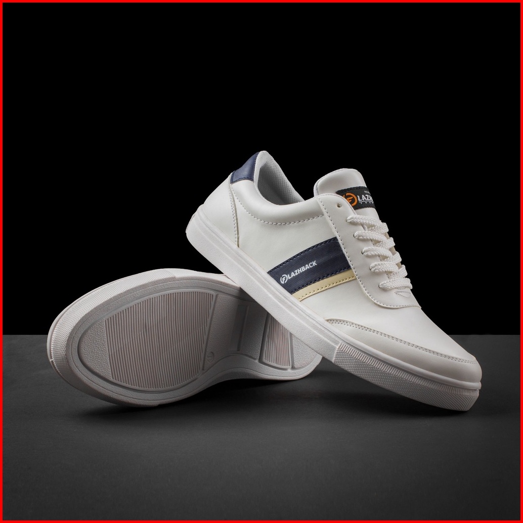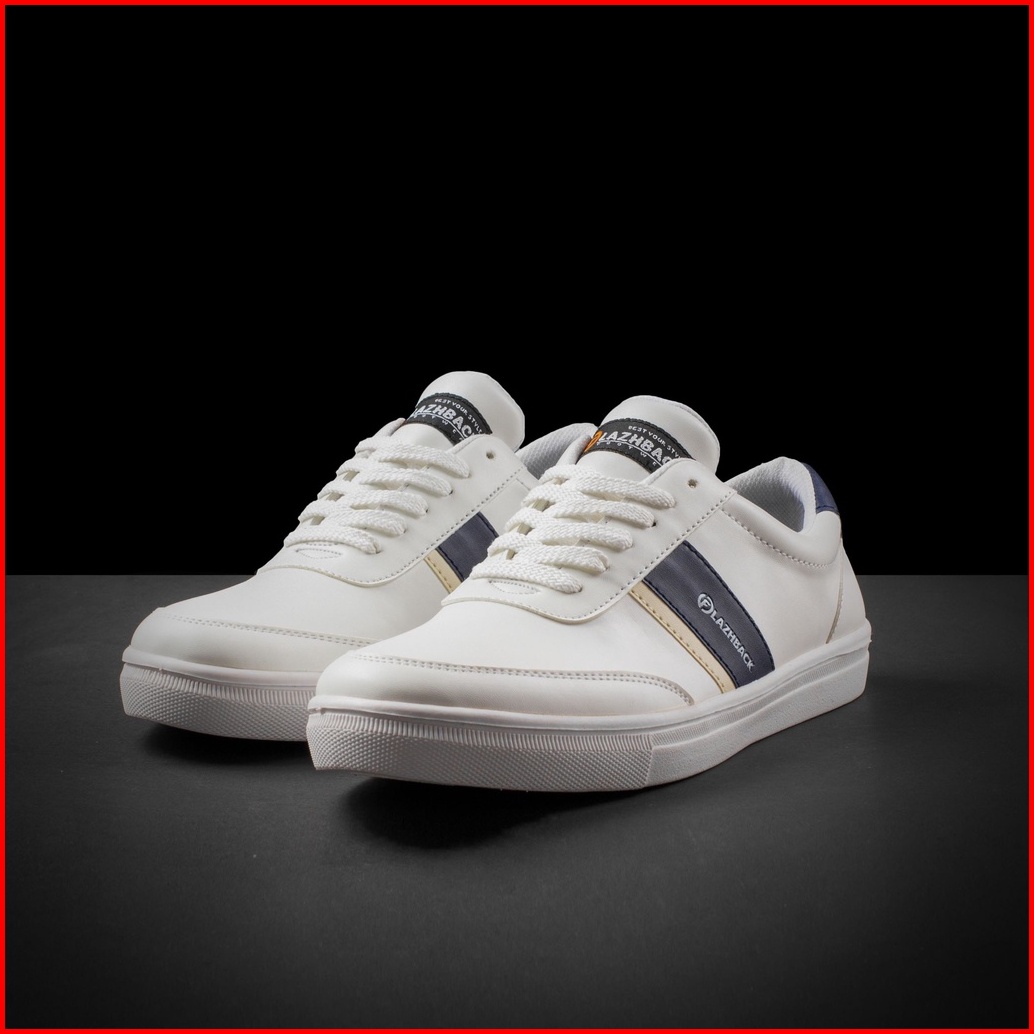 F1201 White Blue - Sepatu Sneakers Pria Casual Flazhback Original