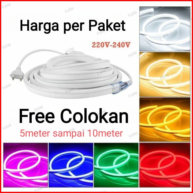 Paket Lampu Neon Flex 220v 5m 6m 7m 8m 9m10m Meter Led Selang Fleksibel 220v Warna Neon Strip